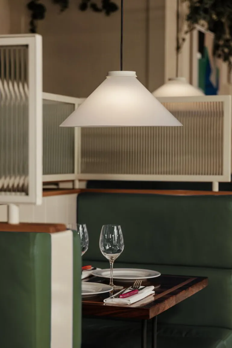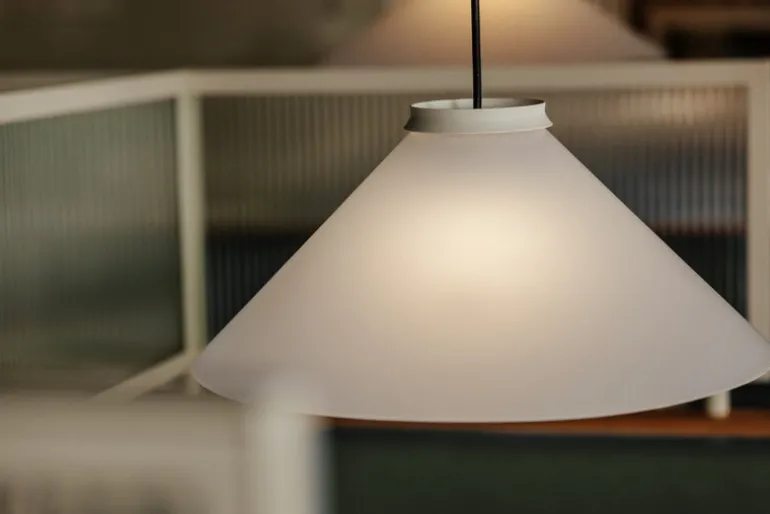 Pendellampan Aline från Pholc är ett bevis på kraften i tidlösa minimalistiska former som fungerar år efter år. Lampan är formgiven i nära samarbete med Afteroom och består av en klassisk konformad skärm dekorerad med en enkel pulverlackerad metallring högst upp – det är allt!