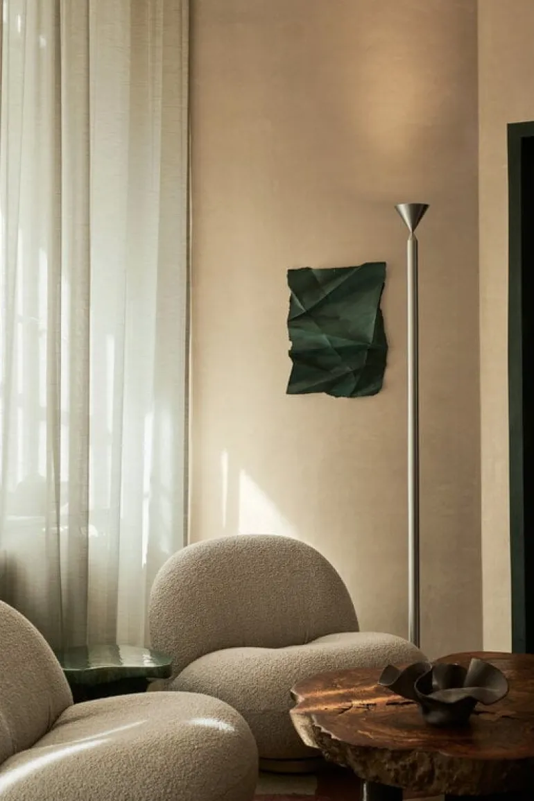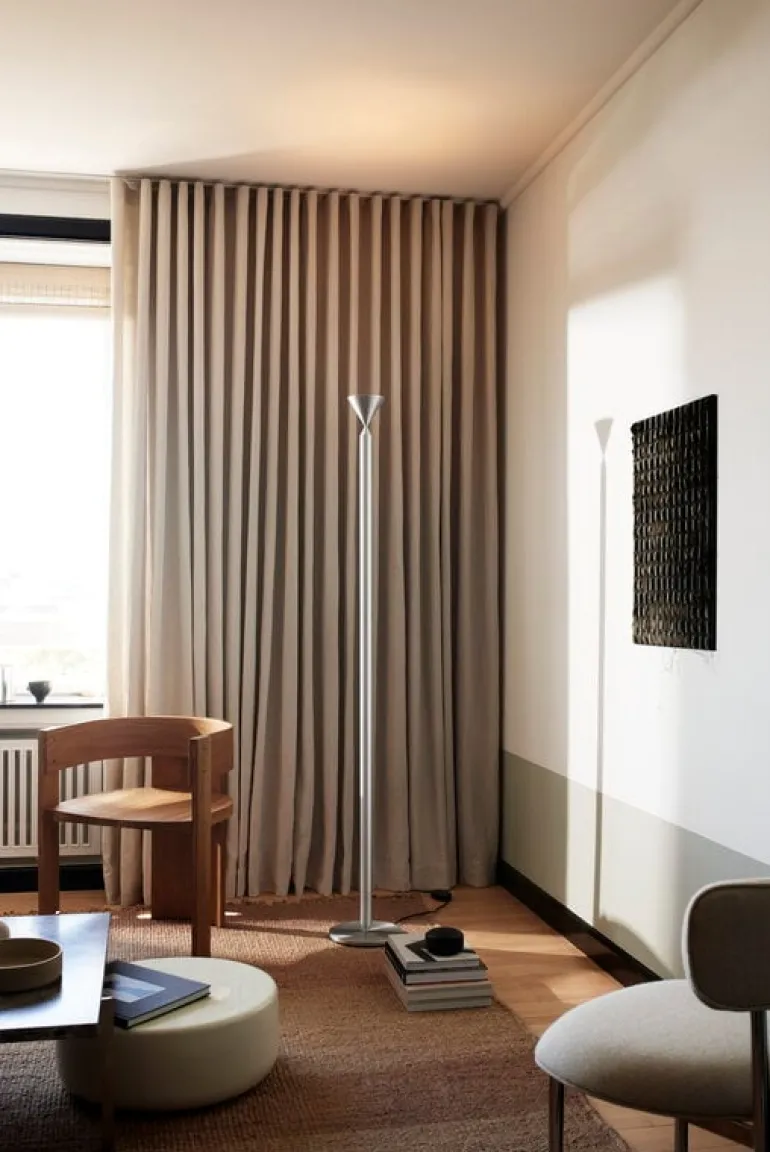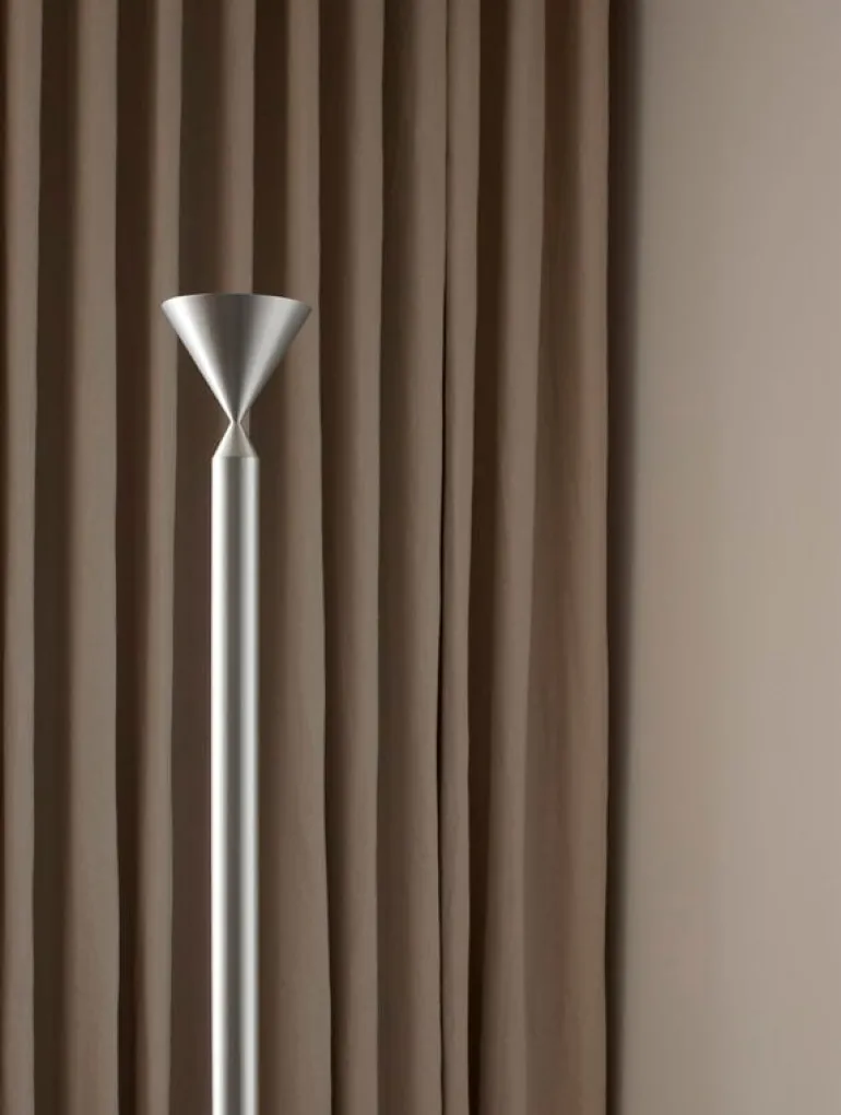 Golvlampan Apollo 180 från Pholc är en fascinerande kombination av dynamiska och statiska egenskaper. Den eleganta golvlampan designades av Broberg & Ridderstråle och består av koniska detaljer som fästs mot ett vertikalt aluminiumrör. Fokus ligger på materialvalet och färgerna samt det uppåtriktade ljuset. Tack vare sin slanka men distinkta form ser Apollo 180 fantastisk ut i olika typer av interiörer.