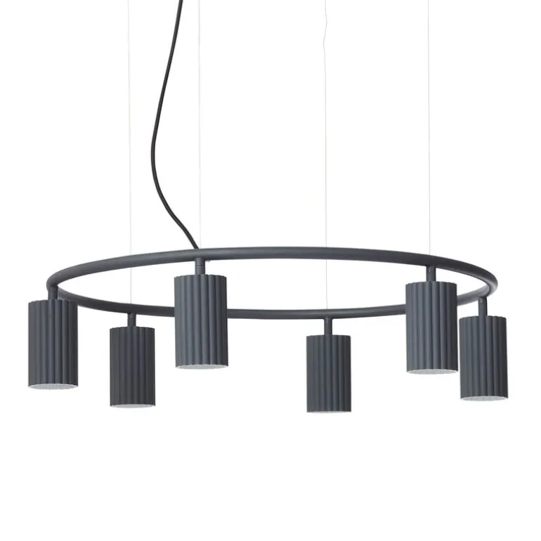 Pholc:s Donna Circle 60 taklampa är en mångsidig och modern ljuskälla som kännetecknas av en unik, taktil aluminiumyta som nästan ser keramisk ut. Inspirerade av mode och välklädda människor, bestämde sig formgivarna Stina Sandwall och Nina Jobs för att skapa en tunn metallskärm som skulle framstå som mjuk och inbjudande – likt flytande veckade textilier. Bestående av en stor metallcirkel med sex lampskärmar, gör Donna Circle 60 taklampa ett uttalande både i hemmet och i offentliga utrymmen.