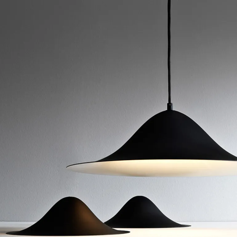 Hans 50 är en pendellampa från Pholc med en vacker siluett, som är en hyllning till ryggstödet på Hans J. Wegners snurrstol. Den enkla pendellampan i aluminium, designad av Monika Mulder, passar till alla inredningar och dess vita insida reflekterar ljuset på ett behagligt sätt. Häng flera Hans-pendellampor på rad och skapa en rolig vågeffekt.
