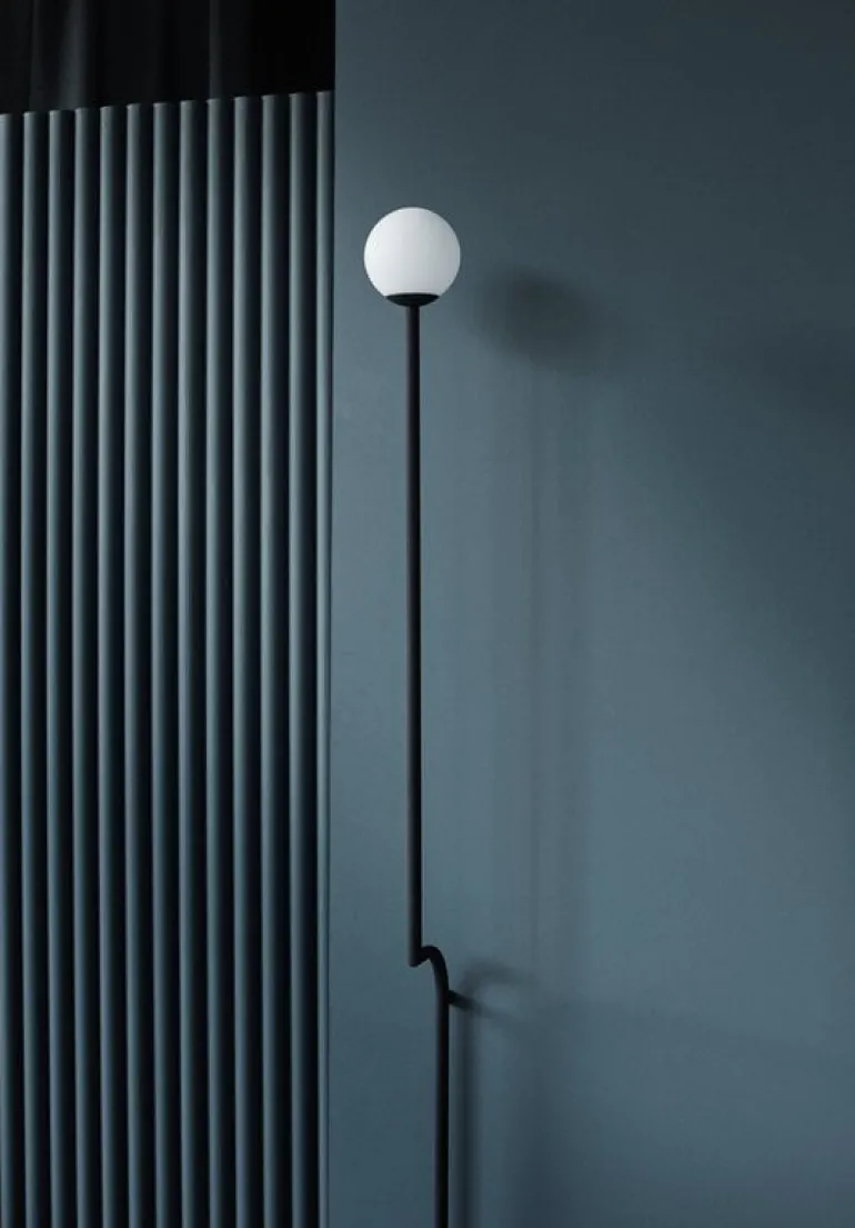 Pholcs vägglampa Mobil har en opalglas-skärm och en enkel böjd metallram. Den eleganta ljuskällan kommer att fånga ögat med sin vackra form i alla hallar och sovrum.