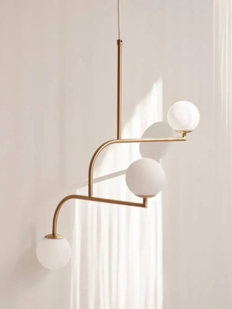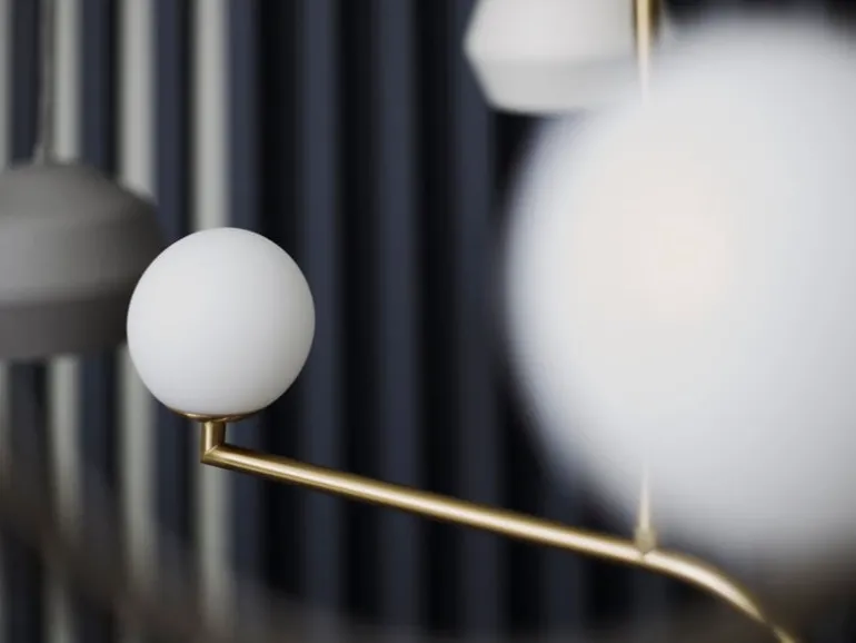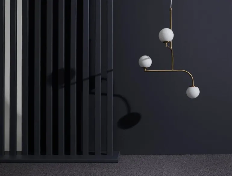 Pholcs pendellampa Mobil 70 har tre skärmar i opalglas och två identiska metallelement som kan vridas runt till önskad komposition. Den eleganta pendellampan finns i tre olika utföranden och kommer att fånga ögat med sin vackra, mobilliknande form i varje mat- och vardagsrum.