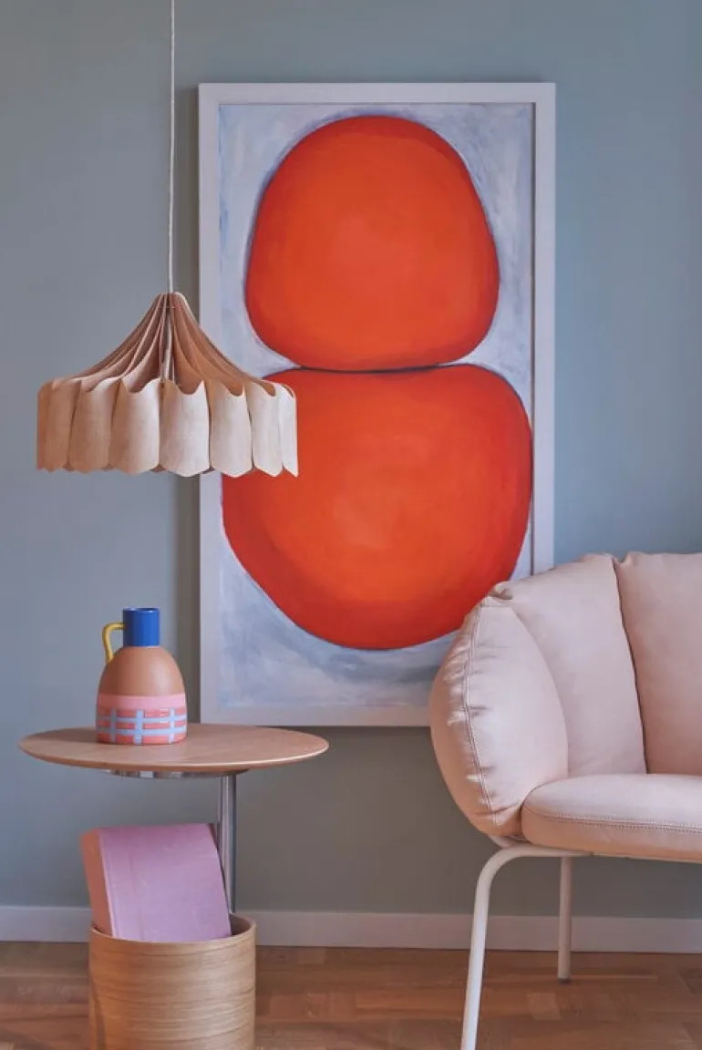 Pioni, som har formgivits av Janne Uusi-Autti, är tillverkad av lövtunn björkplywood som böjts till en vacker, organisk form. Pendellampan sprider ett milt, behagligt ljus runt omkring sig själv, och den passar bäst som stämningsbelysning i hem- eller restaurangmiljöer, för att nämna några exempel. Lampan tillverkas för hand i Finland.