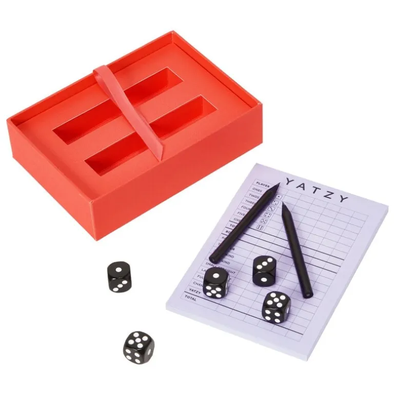 Printworks Yatzy är en färgglad tolkning av det klassiska tärningsspelet. Spelet levereras i en snygg ask och innehåller alla nödvändiga tillbehör, från tärningar till en spelbok och lättlästa instruktioner på engelska, franska och tyska.