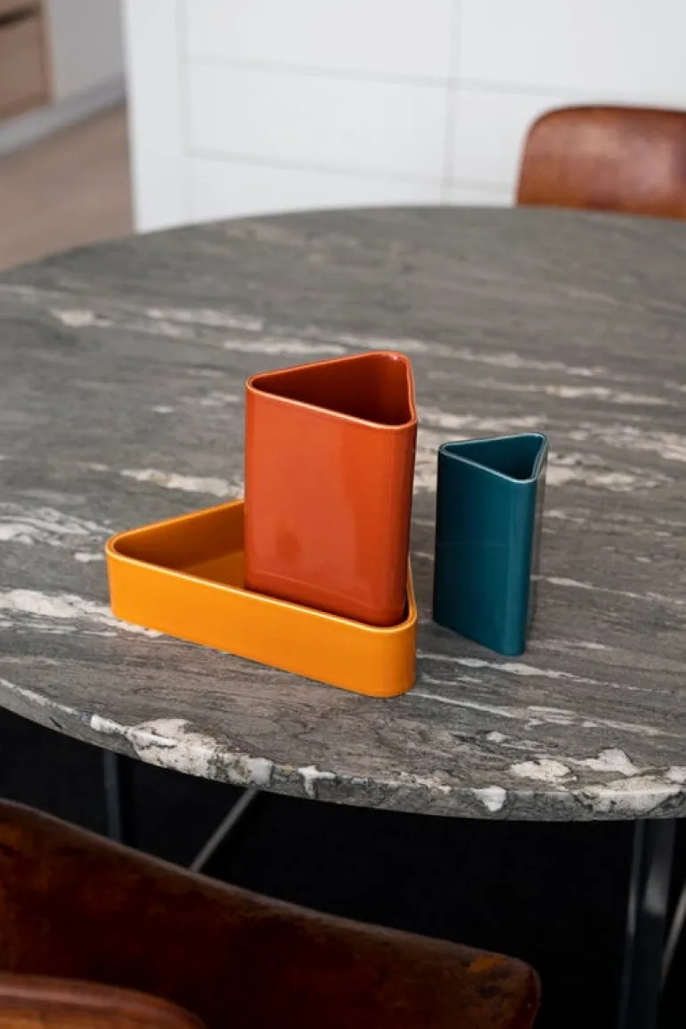 Raawiis Canvas-vas väcker nyfikenhet med sin spännande triangulära form. Den charmiga vasen kan användas som en vas, en karaff eller en pennhållare – endast din kreativitet sätter gränser! Canvas-vasen har inte ett enda fördefinierat syfte, utan ger utrymme för experiment och kreativitet. Med sin lekfulla form och djärva färger kan Canvas-kollektionen mixas och matchas på oändliga sätt för att skapa överraskande kompositioner och nya användningsområden.