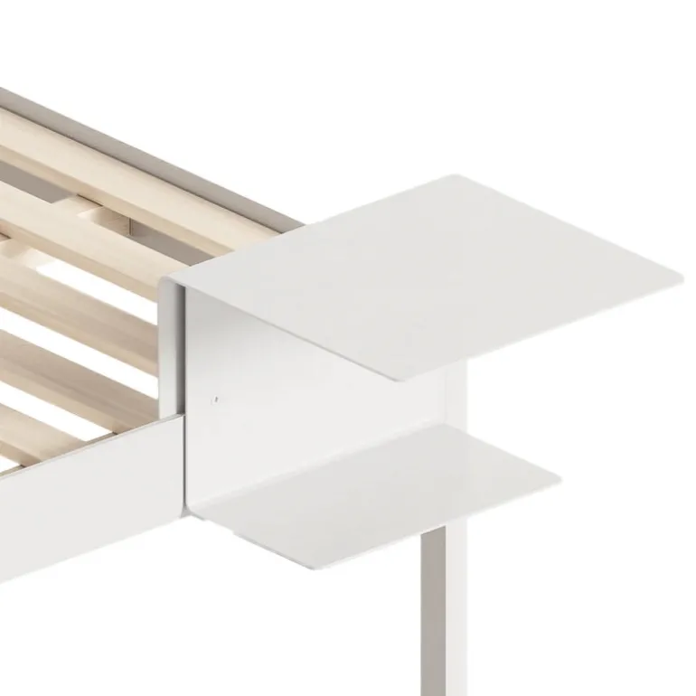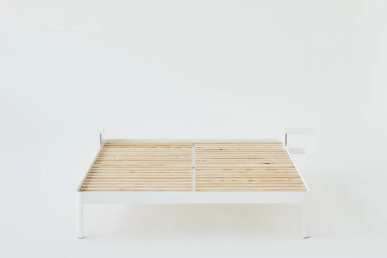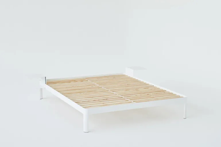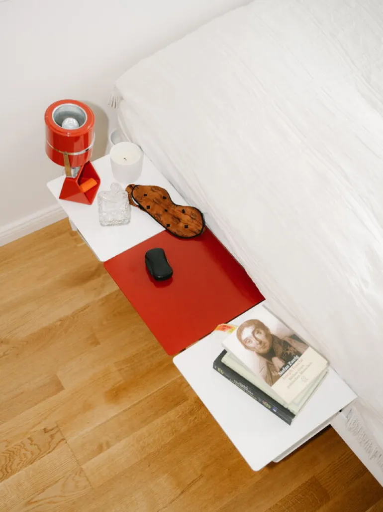 Sidobordet ReFramed passar till sängramen i samma serie. Det minimalistiska nattduksbordet, som formgivits av Tim Rundle för Köpenhamnsbaserade ReFramed, är ett smart sätt att spara plats i sovrummet – bordet sätts helt enkelt fast i sängkanten och gör alla andra nattduksbord överflödiga. Det smidiga lilla nattduksbordet kan monteras på valfri sida av sängen – och på de två hyllorna får du plats med böcker, din mobil och kanske till och med en liten lampa. Sidobordet ReFramed är framställt av bockat aluminium och tillverkas i Sverige.