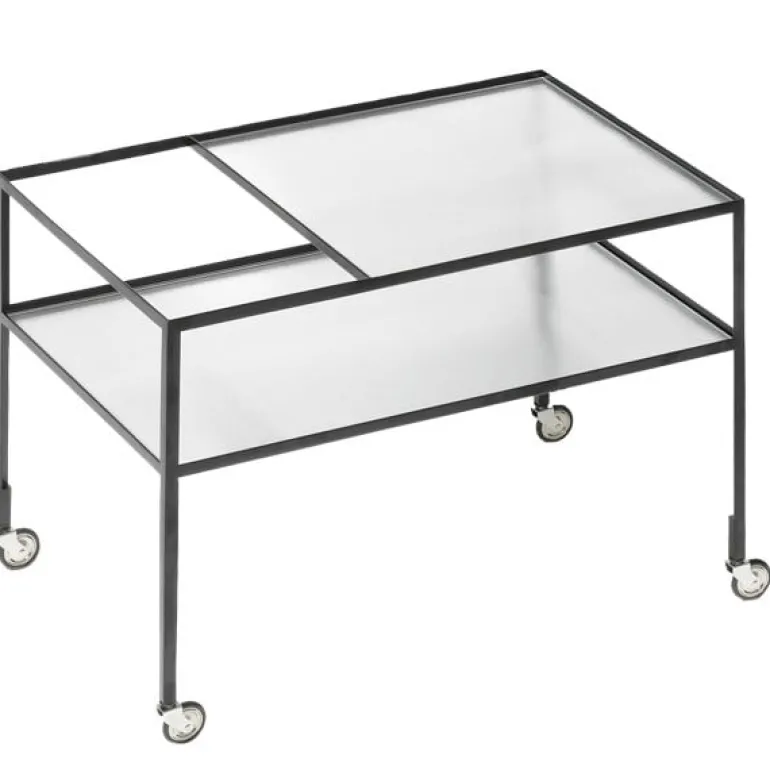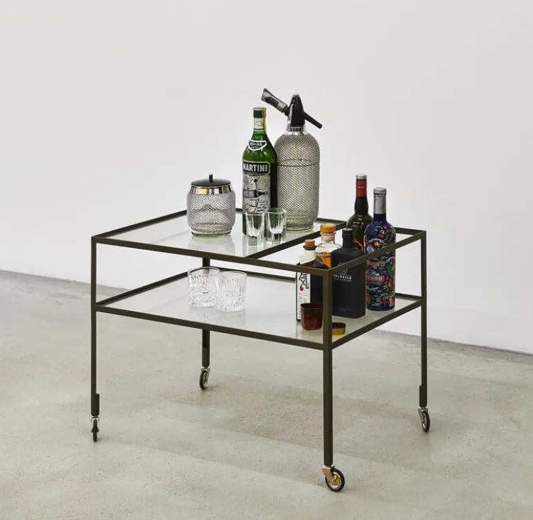 Den tidlösa Barwagen-vagnen designades av Herbert Hirche 1956. Richard Lampert lanserade en nyutgåva 54 år senare för att hedra Hirches hundraårsdag. Tillsammans skapar de enkla glashyllorna och den svarta, minimalistiska stålramen på Barwagen-vagnen en fantastisk möbel. Barwagen kan användas som stilren serveringsvagn, sidobord eller nattduksbord, och kommer att fylla ditt hem med Hirches elegans.