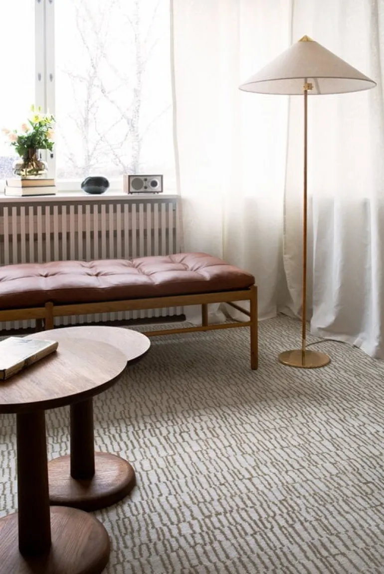 Ketjumattan är en del av Roots Livings designerkollektion. Ull- och bambumattan är formgiven av Ulla Koskinen och vävs för hand i Indien – en vacker kombination av finsk design och indisk hantverkstradition.
