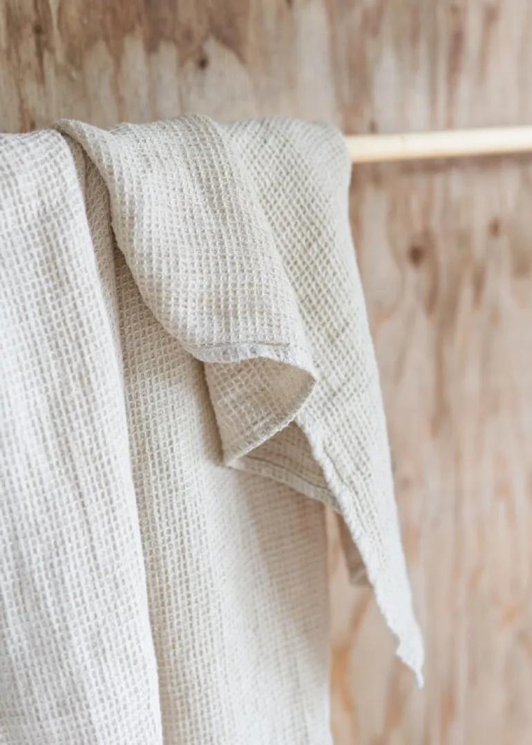 Badlakanet Waffle från Roots Living är tillverkat av tåligt linne som känns skönt mot huden och som genom användning bara blir mjukare och skönare med tiden. Waffle har god uppsugningsförmåga och torkar snabbt, så badlakanet passar därför perfekt i badrummet, i bastun eller vid poolen – och varför inte använda den som filt på sommarpicknicken, då det lyxigt stora badlakanet är stort nog att sitta på! På ena sidan av Waffle-badlakanet finns en ögla, som underlättar upphängning efter användning.
