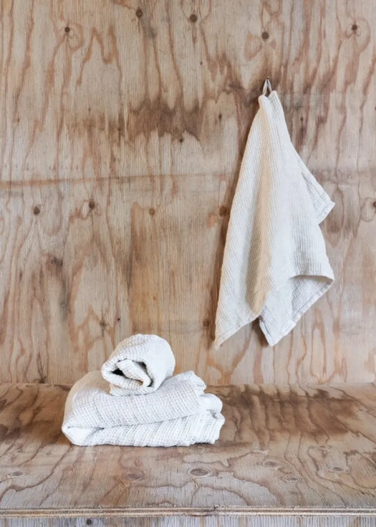 Handduken Waffle från Roots Living är tillverkad av tåligt linne som känns skönt mot huden och bara blir mjukare och bättre med tiden. Våffeltygets yta absorberar bra och torkar snabbt vilket gör Waffle till den perfekta handduken i både badrummet och köket. På ena sidan av Waffle-handduken finns en ögla som underlättar upphängning efter användning. Paketet innehåller två handdukar, båda med måtten 40 x 60 cm.
