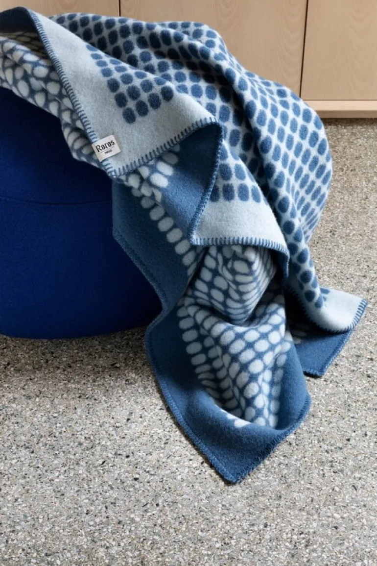 Røros Tweeds filt Palette är prydd med ett grafiskt mönster skapat av Petter Skogstad och Fredrik Wærnes. Designen är inspirerad av klassiska trycktekniker som silkscreen, litografi och träsnitt, vilket tydligt framgår av de strukturellt arrangerade prickarna som finns över hela ytan. Filten är vävd av ull i två distinkta färger. Mönstret finns på båda sidor, men i omvända färger. Filten har dessutom kompletterats med kraftiga kantsömmar. Palette är perfekt för mysig avkoppling i soffan eller sängen, men den fina filten kan även ges bort i present.