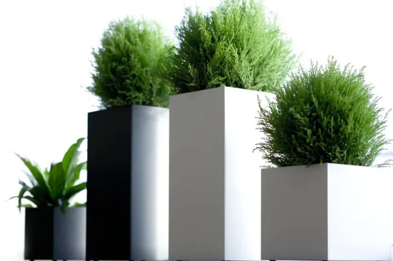 De vackra Linné-krukorna från Röshults är gjorda av aluminium och kan användas både inomhus och utomhus.