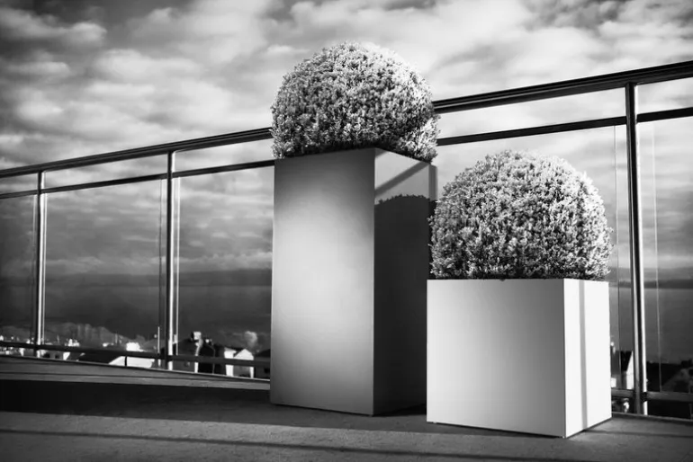 De vackra Linné-krukorna från Röshults är gjorda av aluminium och kan användas både inomhus och utomhus.