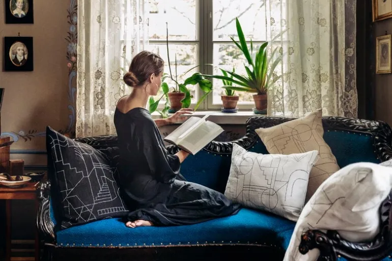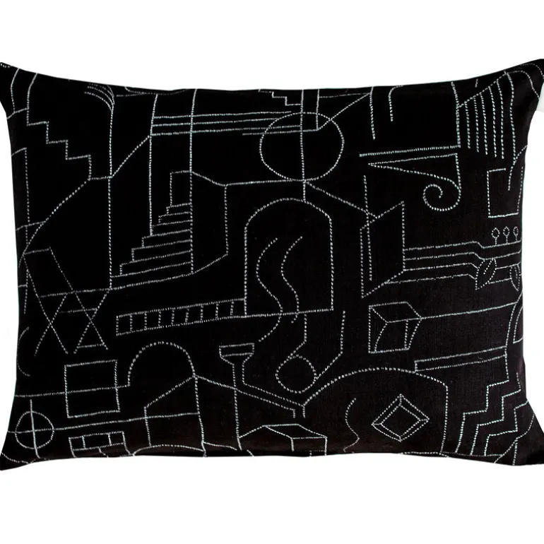 Unien talo-kuddfodralet av Saana ja Olli hämtar inspiration från arkitektoniska drömmar och finsk hustradition. Unien talo (”drömmarnas hus”) kännetecknas av abstrakta mönster som målats i tydliga, subtila linjer. Alla Saana ja Olli-produkter är tillverkade av 100 % slitstark hampa och passar i vardagslivet. Produkterna är transparent tillverkade i Finland.