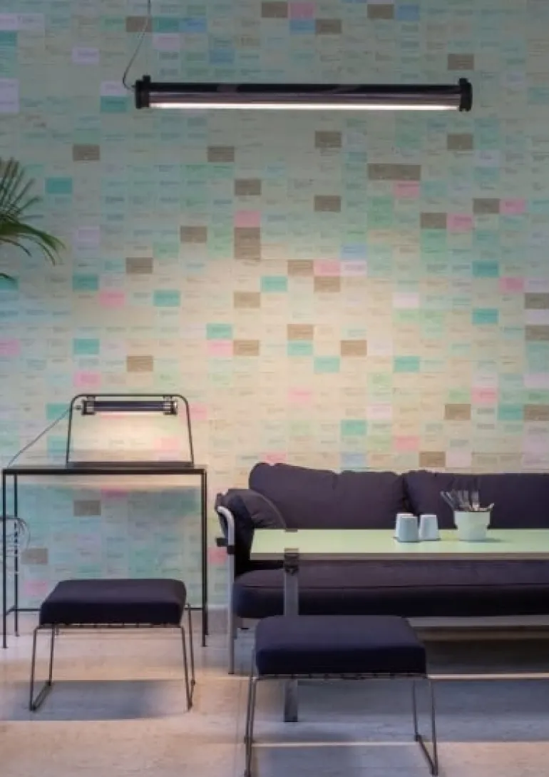 Sammodes taklampa Brueghel Casambi har en LED-rör ljuskälla och metallkropp, vilket fyller utrymmet med ett ljust, bländfritt ljus som är utmärkt för arbete. Du kan montera lampan direkt på taket eller hänga den över ett skrivbord eller köksbänk med hjälp av de medföljande upphängningskablarna.