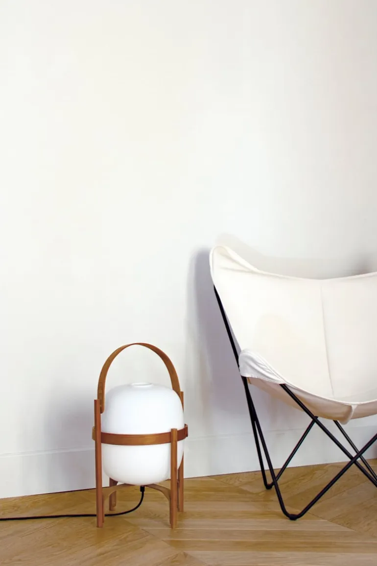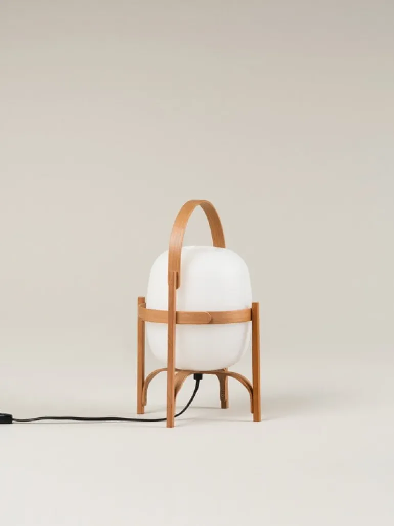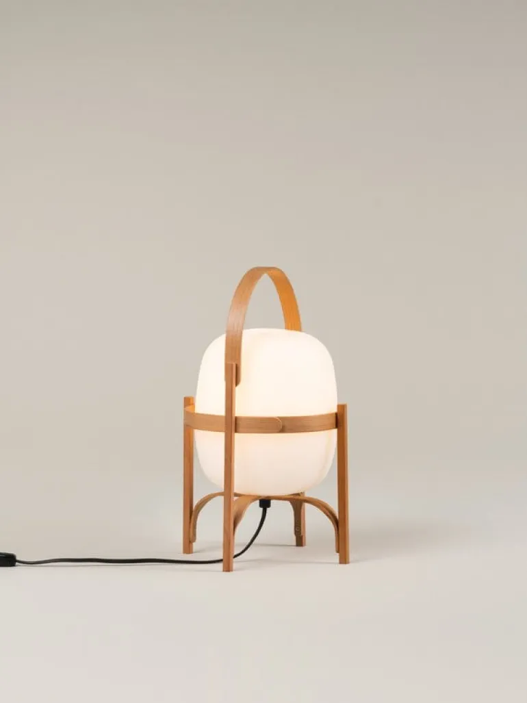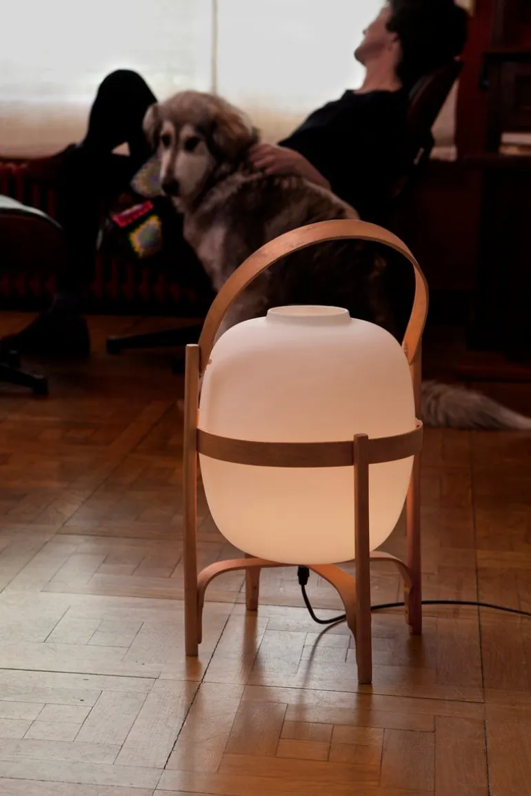Santa & Coles Cesta är en ikonisk bordslampa designad av Miguel Milá 1962. Cesta består av en vacker skärm i opalglas och en ram i körsbärsträ, som formats med hjälp av traditionella ångtekniker. Det dimbara ljuset skapar en mysig stämning, och trähandtaget gör det enkelt att flytta lampan. Cesta-lampan är iögonenfallande med sin charmerande design som påminner om japanska lyktor, och den går att använda både som bordslampa och golvlampa.