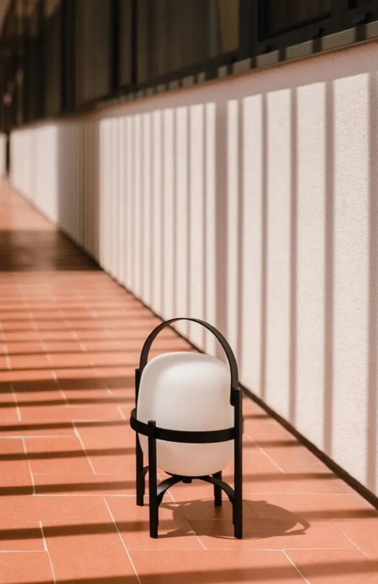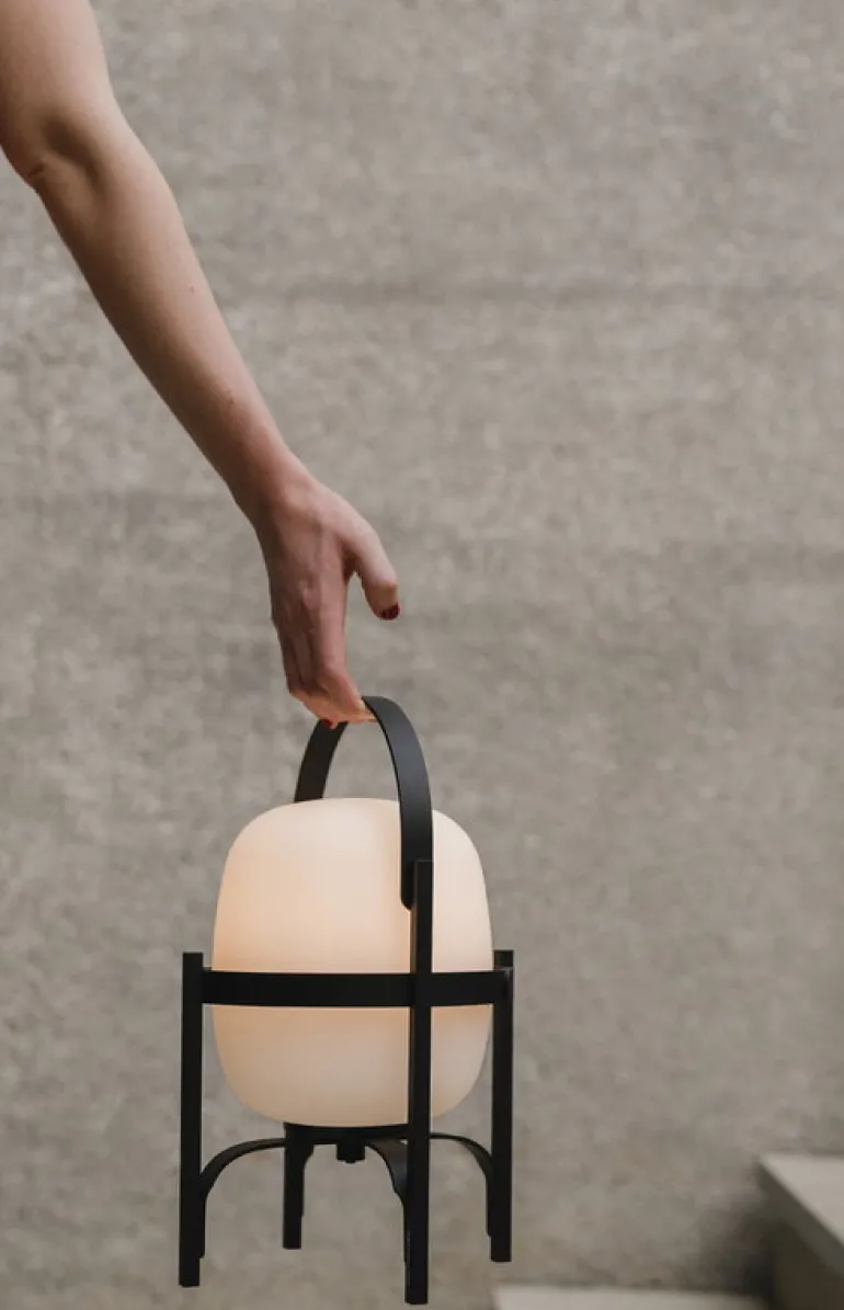 Cestita Alubat är en bärbar, sladdlös aluminiumversion av lampan Cestita från Santa & Cole. Cestita Alubat är utrustad med ett laddningsbart litiumbatteri och en inbyggd LED-enhet, vilket gör den till en praktisk och stämningsfull ljuskälla i hemmet eller på platser utan elektricitet. Det mjuka skenet från den vita plastskärmen kompletteras perfekt med den svarta aluminiumstrukturen.