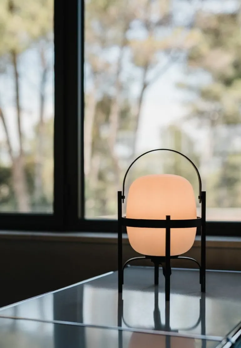 Santa & Coles Cestita är en ikonisk bordslampa som designades 1962 av Miguel Milá. Ljuset skapar en mysig stämning, och handtaget gör det enkelt att flytta på lampan. Cestita är iögonfallande med sin charmerande design som påminner om japanska lyktor, och paras vackert ihop med den större Cesta-lampan.
