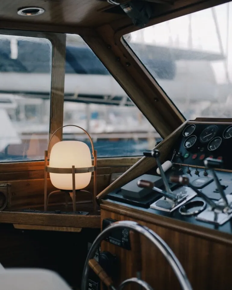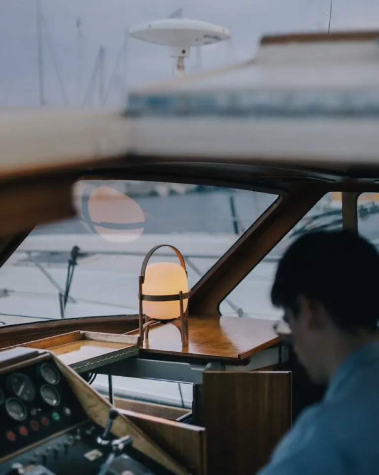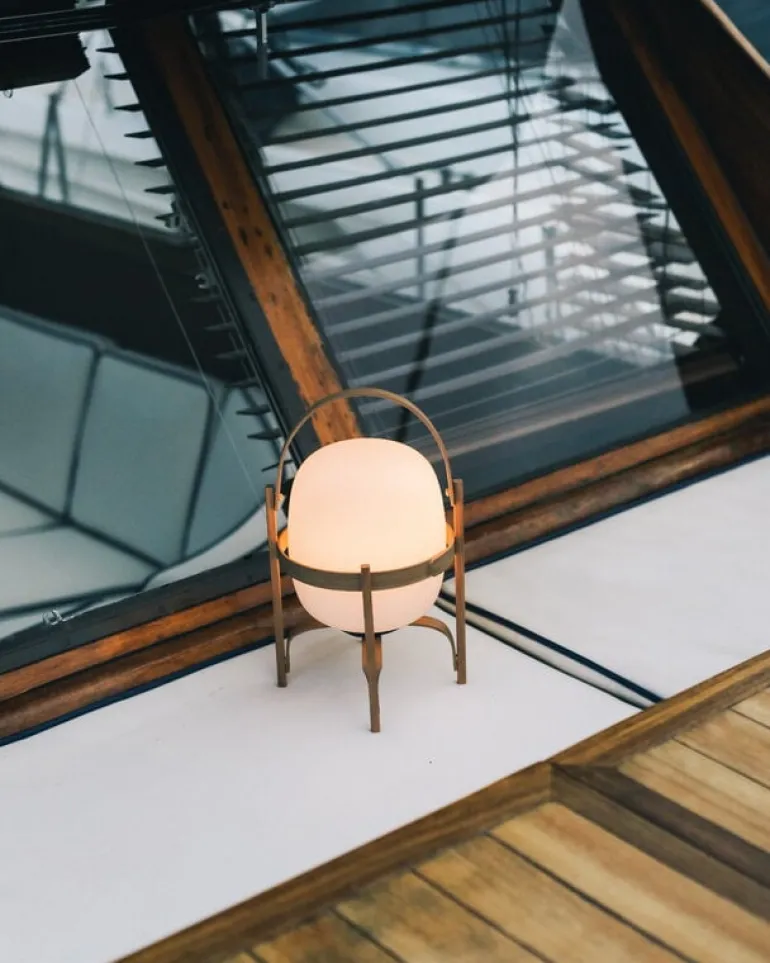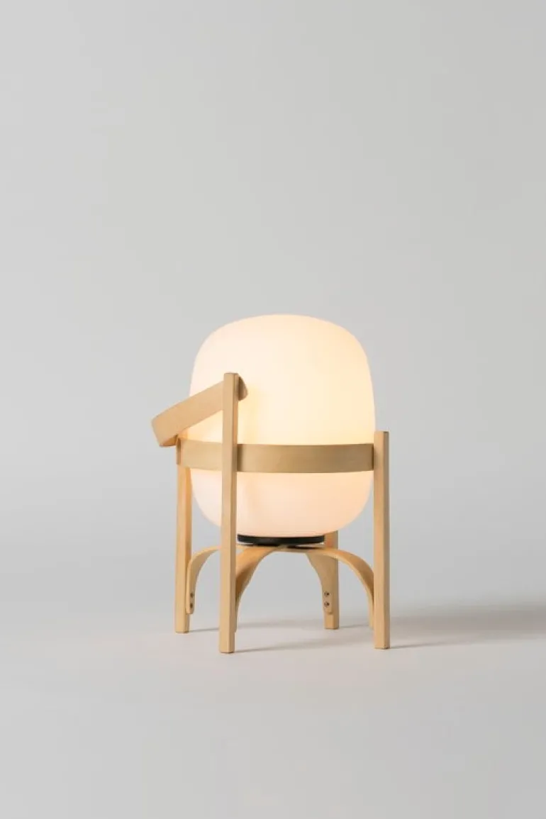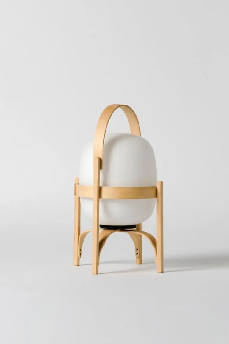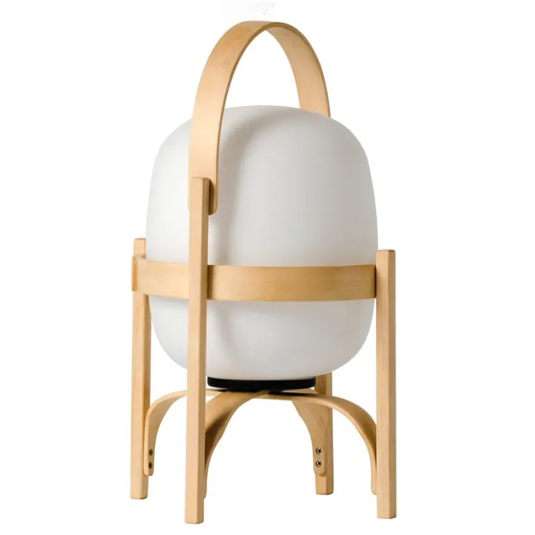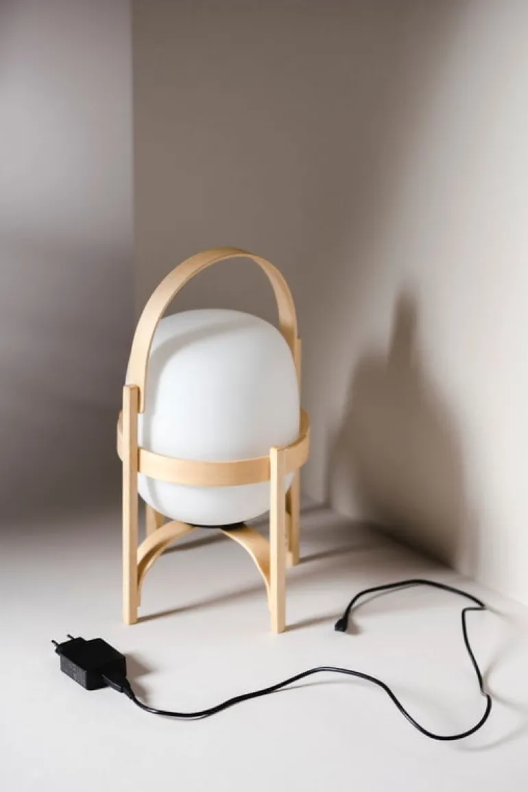 Cestita Batería är en bärbar, sladdlös version av lampan Cestita från Santa & Cole. Cestita Batería är utrustad med ett laddningsbart litiumbatteri och en inbyggd LED-enhet, vilket gör den till en praktisk och stämningsfull ljuskälla i hemmet eller på platser utan elektricitet. Det mjuka ljuset från skärmen i opalglas kompletteras perfekt av den vackra strukturen i körsbärsträ.