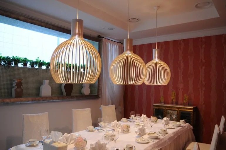 Secto Designs Octo 4240 är en omfångsrik, men ändå smäcker och luftig pendellampa i trä. Octo hamnar omedelbart i blickfånget och ger inbjudande, stämningsfull belysning i varje rum.