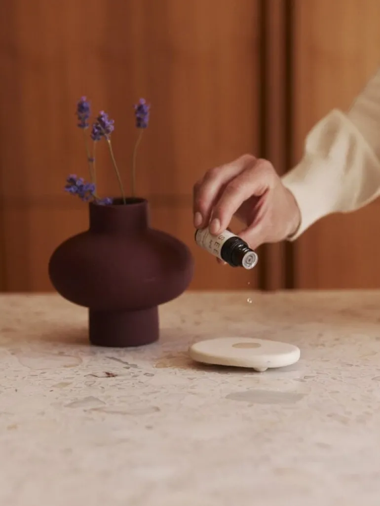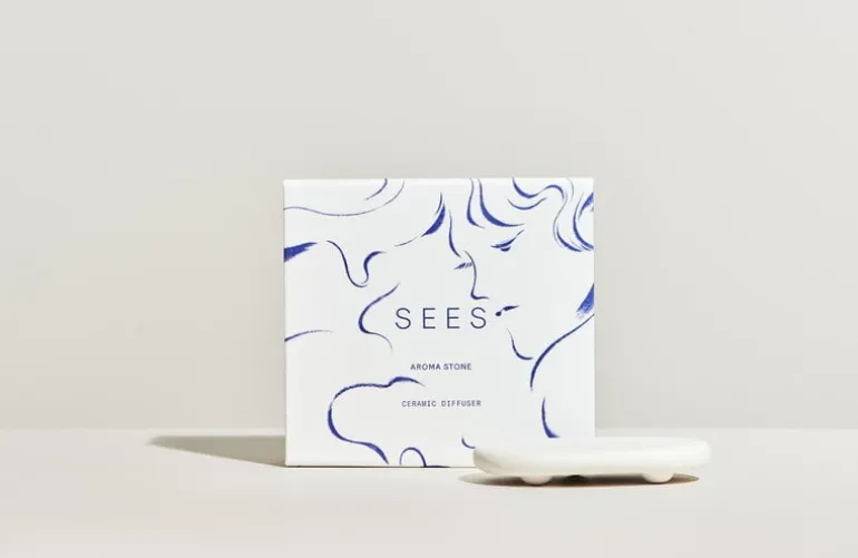 SEES aromasten är en naturlig diffuser för eteriska oljor. De här aromastenarna tillverkas för hand i en liten verkstad i Finland och absorberar snabbt dropparna av eterisk olja, men avger dem långsamt. Doften som avges från den keramiska aromastenen är mildare jämfört med den från en elektrisk diffuser, vilket innebär att den passar bra i bostäder, men också i mindre utrymmen som badrum, garderober, behandlingsrum eller bilar. Stenen kan dessutom enkelt flyttas från en plats till en annan vid behov. Aromastenen levereras tillsammans med eterisk eukalyptusolja, som har en uppfriskande och samtidigt rogivande doft.