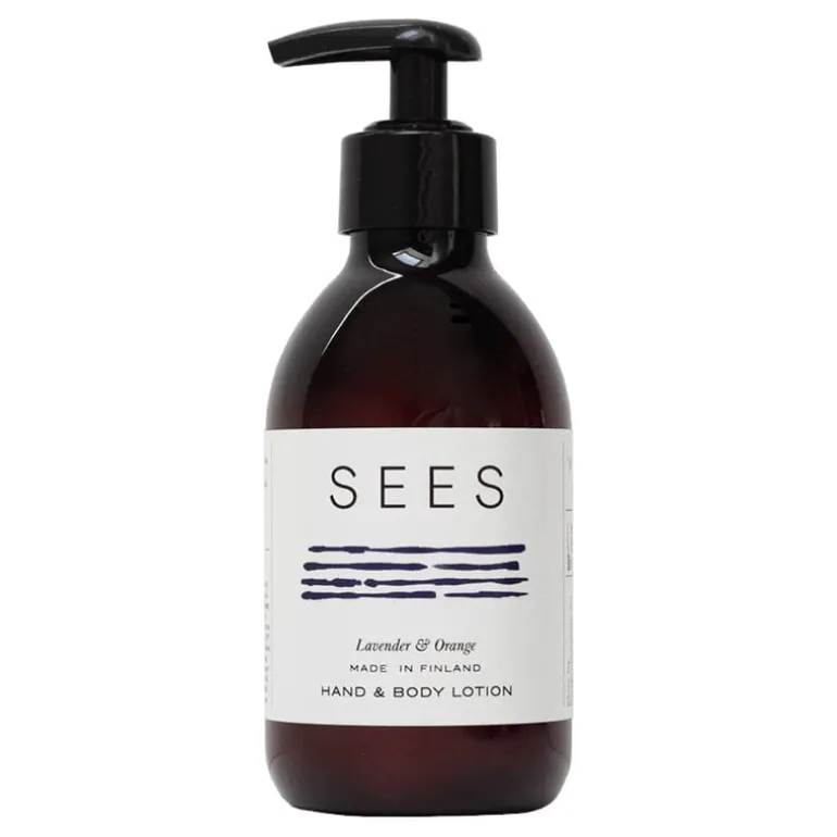 SEES hand- och kroppslotion vårdar och ger näring åt huden med en lyxig blandning av naturliga ingredienser. Denna snabbabsorberande lotion innehåller eteriska oljor som avger en doft av rogivande lavendel och uppfriskande apelsin. Bland de aktiva ingredienserna finns näringsberikande blåbärsfröolja och nordisk björksav. Den här milda fuktkrämen kan användas dagligen till hela kroppen.