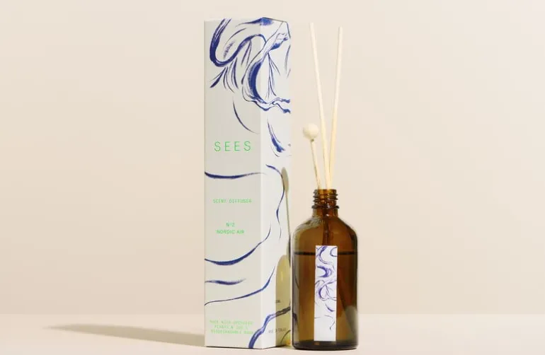 SEES Companys rumsdoft ger ett charmigt intryck med sin fräscha och naturliga doft Nordic Air med noter av ceder, salvia, kamomill och citrus. Till doftspridaren medföljer träpinnar som du kan föra ner i flaskan för att hjälpa till att sprida doften till den närmaste omgivningen.