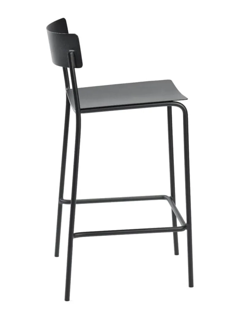 Barstolen August från Serax är tillverkad av pulverlackerat aluminium och passar både för inomhus- och utomhusbruk. Barstolen passar lika bra i trädgården eller på uteplatsen som bredvid ett matbord eller skrivbord inomhus.