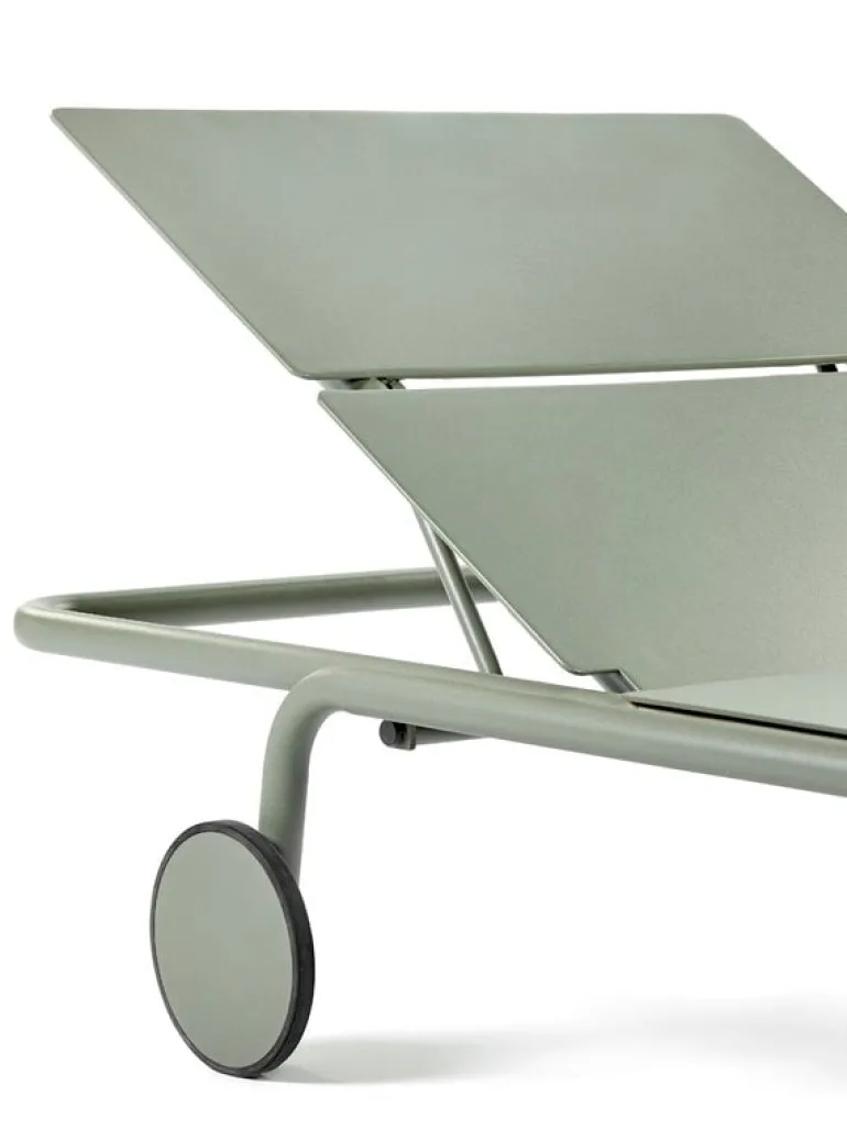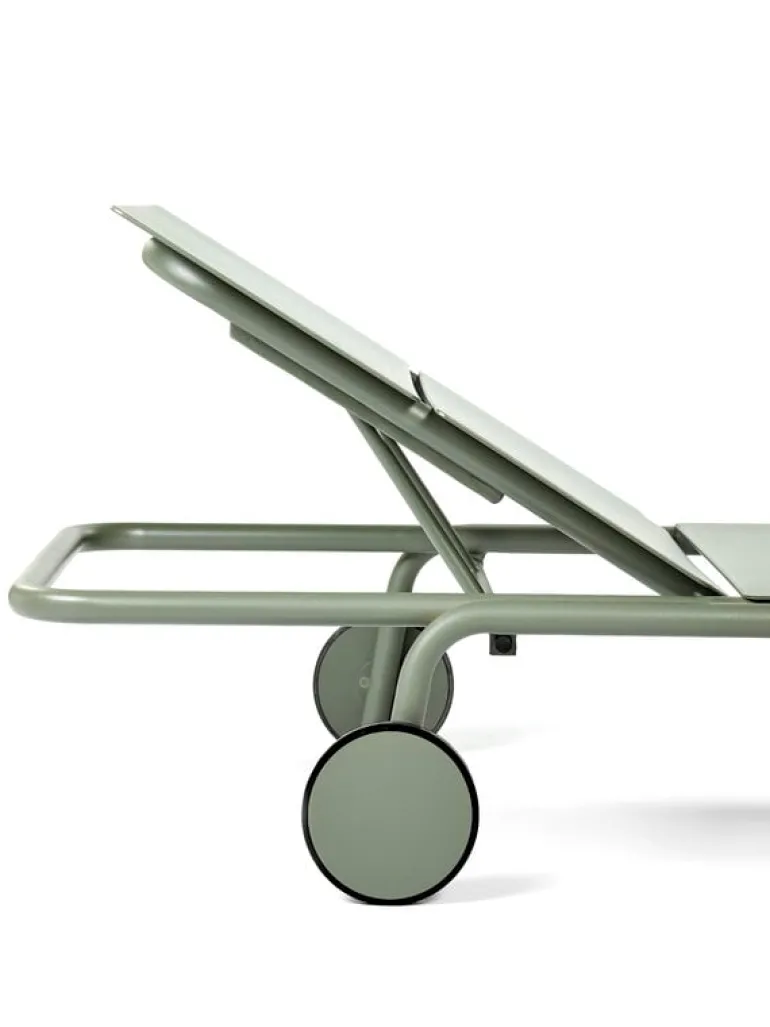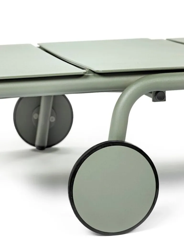 Solsängen August, från Serax, är det perfekta tillskottet till vilken uteplats som helst. Den minimalistiska solsängen har hjul och ett justerbart ryggstöd som låter dig njuta av solen i din favoritposition.