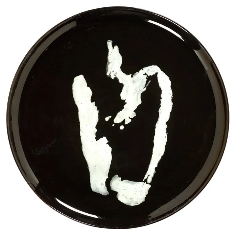 Serax’s Feast serveringsfat är dekorerat med ett vitt abstrakt mönster, som påminner om det klassiska Rorschach-testet – vilken form ser du på en svart bakgrund? Den stora runda tallriken är idealisk för att servera fisk och sallad, samt snacks och andra efterrätter.