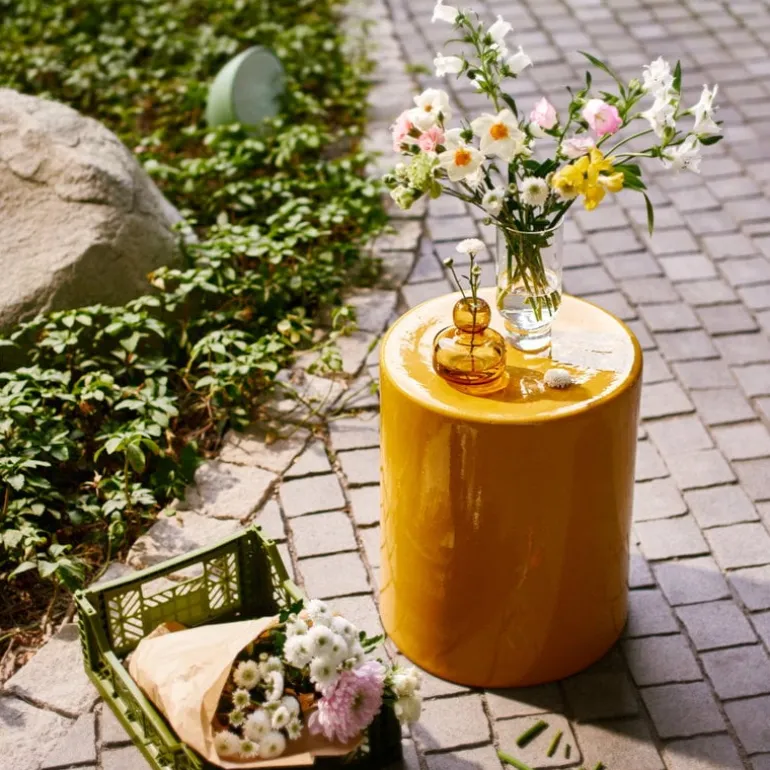 Seraxs Pawn är ett sidobord i stengods som även kan användas som pall. Dess starka materialnärvaro framhävs av den glansiga glasyren och den cylinderformade designen.