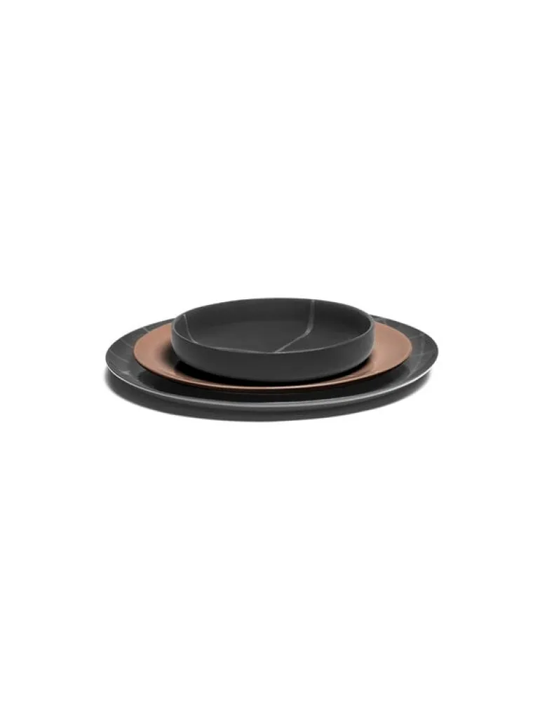 Serax mattallrik Zuma har ett geometriskt mönster med fina linjer som inspirerats av Bauhaus-skolans minimalistiska designprinciper. Den handpräglade porslinstallriken har ytbehandlats och glaserats. Zuma M-tallriken är ett perfekt val för servering av generöst tilltagna portioner av huvudrätter, och den briljerar i rollen som allsidigt serveringsfat både till vardags och vid speciella tillfällen.