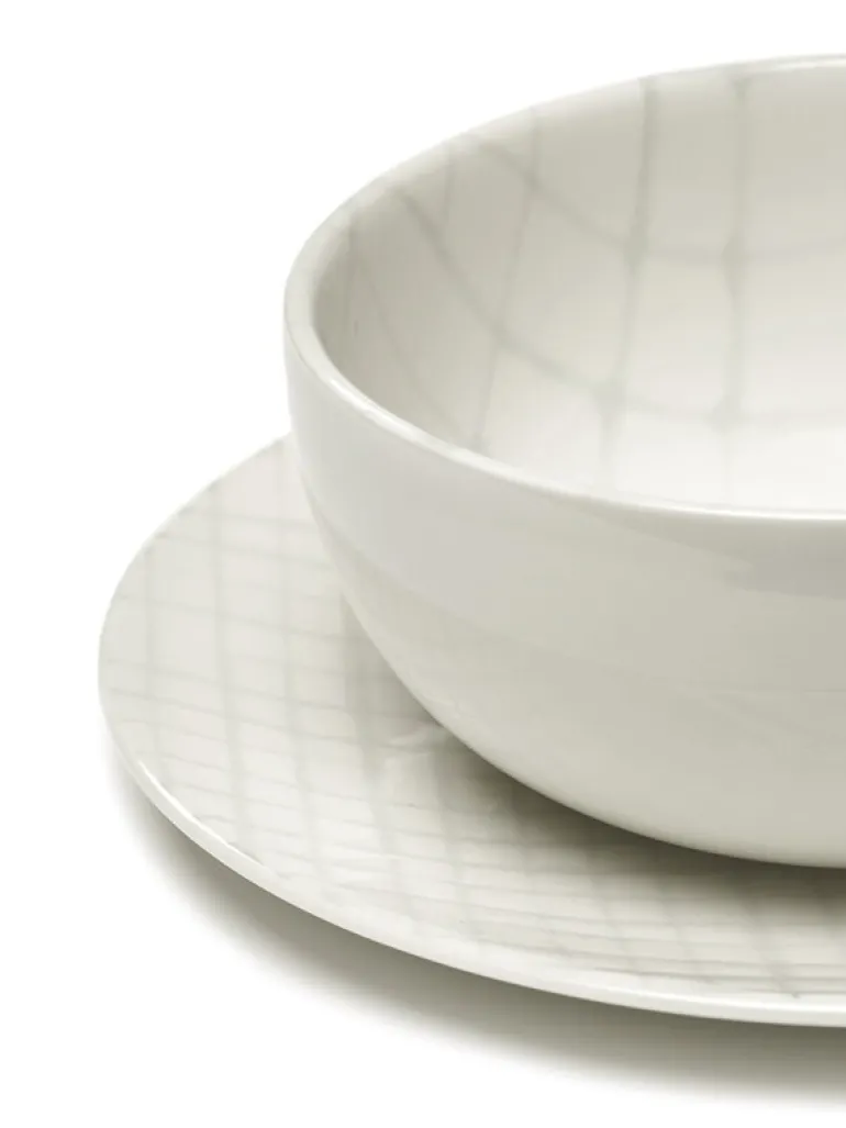 Serax skål Zuma har ett geometriskt mönster med fina linjer som inspirerats av Bauhaus-skolans minimalistiska designprinciper. Den handpräglade porslinsskålen har ytbehandlats och glaserats. Zuma XS-skålen är ett perfekt val för servering av en liten sallad, müsli eller kanske en portion glass, och den briljerar i rollen som allsidig serveringsskål både till vardags och vid speciella tillfällen.
