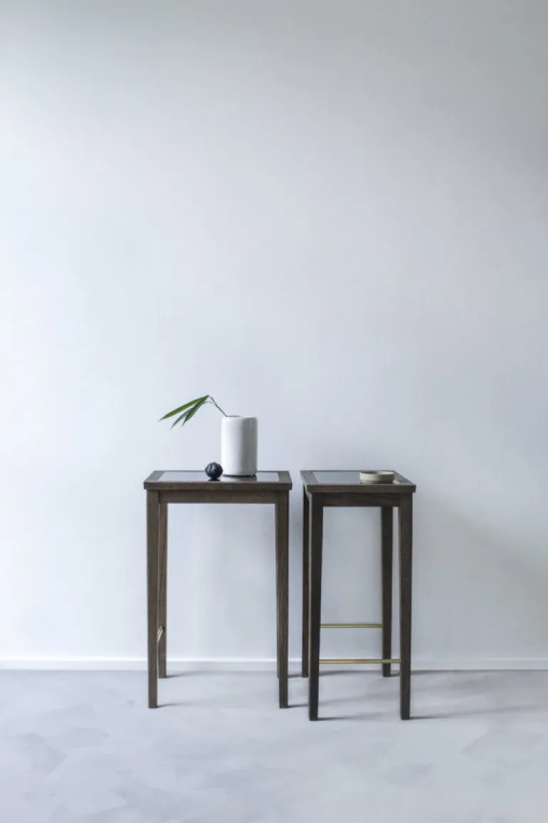 Sibast No 1 sidobordet består av en elegant ekram som kompletterats med en supportande struktur av mässing och en bordsskiva av svart glas som ger en dramatisk känsla till bordets minimalistiska design. Tack vare den smidiga och eleganta designen passar det 56 cm höga bordet till flera olika utrymmen och användningsområden; placera den i hallen eller entrén till förvaring av nycklar, växel och andra småsaker eller skapa en stilig möbel med en bordslampa eller vacker vas i vardagsrummet.
