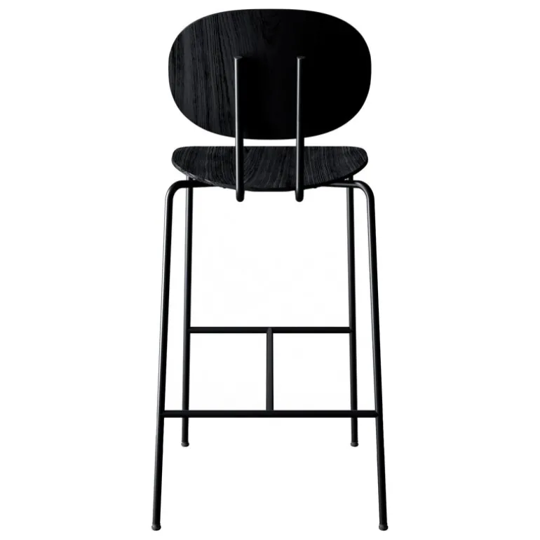 Sitsmaterialet i Piet Hein barstolen är böjd träfanér, och de dynamiskt placerade, lätt lutande benen är gjorda av stål. Tack vare den smala men ändå robusta designen passar Piet Hein-stolarna väl för både hem- och restaurangbruk.