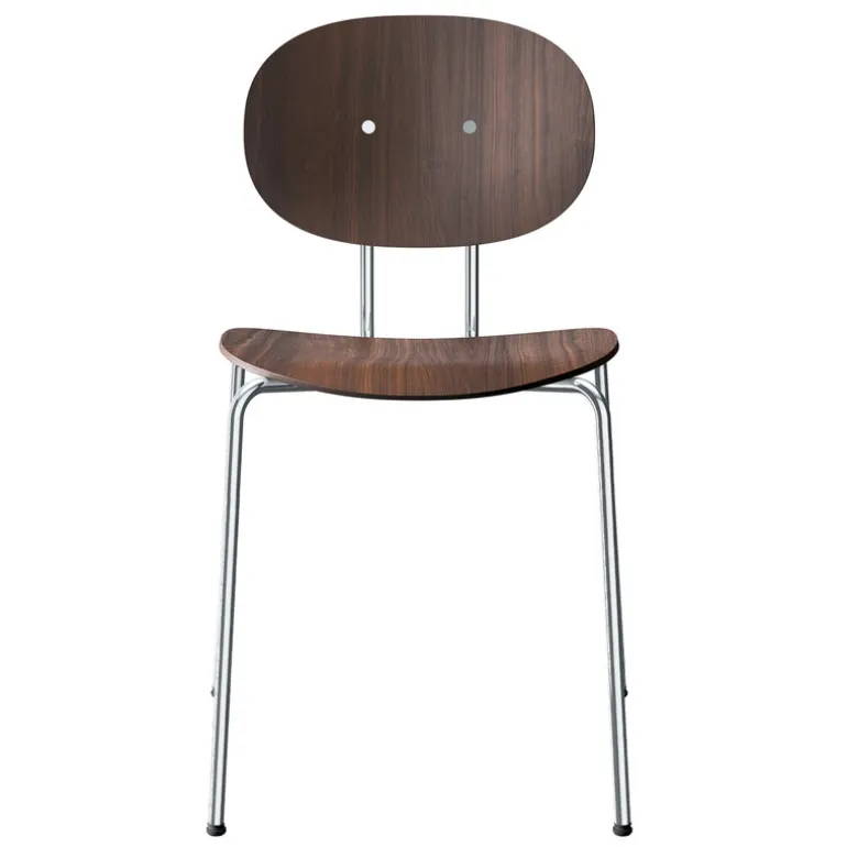 Sätesmaterialet i Piet Hein-stolen är böjt träfaner och de dynamiskt positionerade, lätt lutande benen är gjorda av stål. Tack vare den stapelbara ramen och den smidiga, men ändå robusta, designen passar Piet Hein-stolarna lika väl i hemmet som på restauranger.