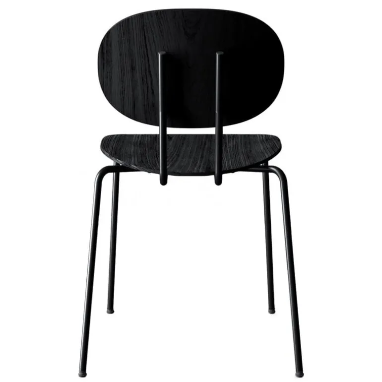 Sitsmaterialet i Piet Hein stolen är böjd träfaner, och de dynamiskt placerade, lätt lutande benen är gjorda av stål. Tack vare den stapelbara ramen och den smala men ändå robusta designen, passar Piet Hein stolarna väl för både hem- och restaurangbruk.
