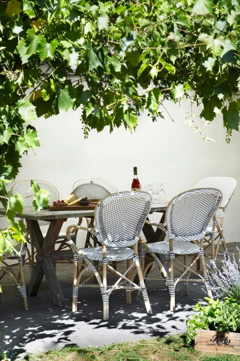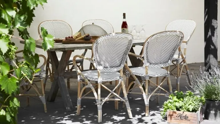 Stolen Isabell från Sika-Design är en stapelbar stol med armstöd, den är tillverkad av rotting och plastväv. Inspirationen till Isabell kommer från Paris klassiska bistrostolar. Stolen passar perfekt på restauranger och caféer men den funktionella skönheten passar även hemma eller i trädgården.