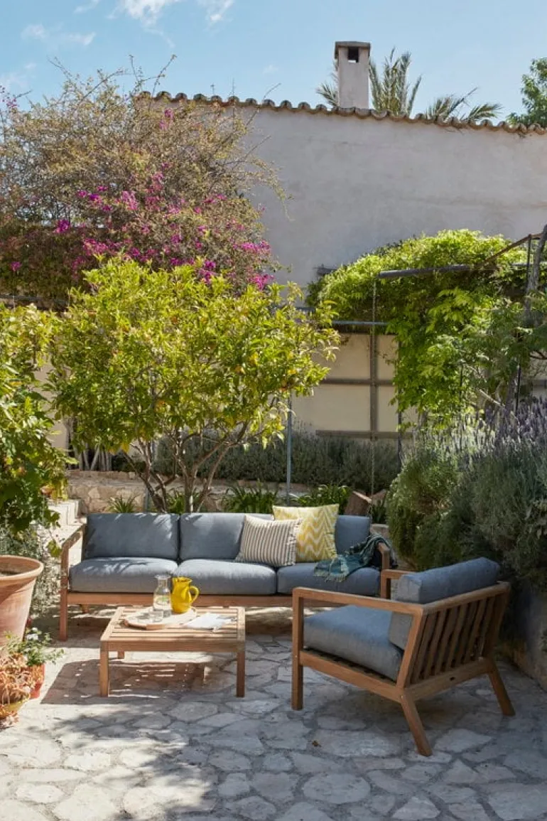 Skageraks soffa Virkelyst är så bekväm att du enkelt skulle kunna tro att den designades för inomhusbruk. Hursomhelst är den tvåsitsiga soffan, som består av en minimalistisk teak-ram och puffiga kuddar, designad för utomhusbruk och klädseln är därför väldigt tålig såväl som vatten- och smutsavvisande. De hypoallergena fossflingorna inuti kuddarna är kända som fyllnadsmaterial som andas väldigt mycket och behåller sin form över tid.