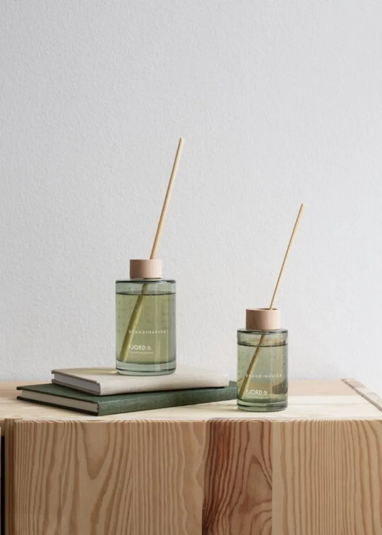 Doftdiffusern Fjord från Skandinavisk har toner av trä, mogen frukt, vilda bär, svarta vinbär och hallonblommor. Doften tar dig med till de norska fjordarna och deras barrskogar, blommande ängar och forsande vattenfall.