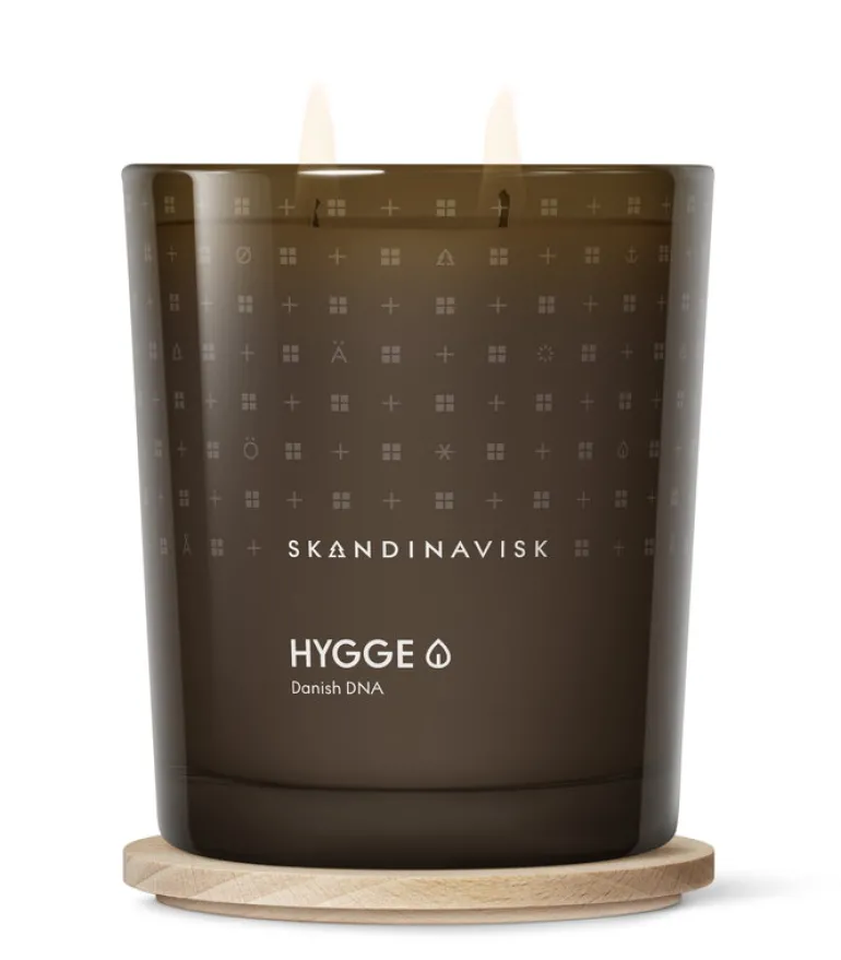 Skandinavisks doftljus Hygge har toner av svart te, mint, torkade äpplen och kanel. Hygge, som inte har någon direkt översättning, syftar på danskarnas sätt att skapa trivsel och gemenskap i vardagen. Detta doftljus i begränsad upplaga är inneslutet i en genomskinlig glasburk. Ljuset levereras i en presentförpackning och dess trälock kan även användas som underlägg. Ljuset har två veke och brinner i cirka 50 timmar.