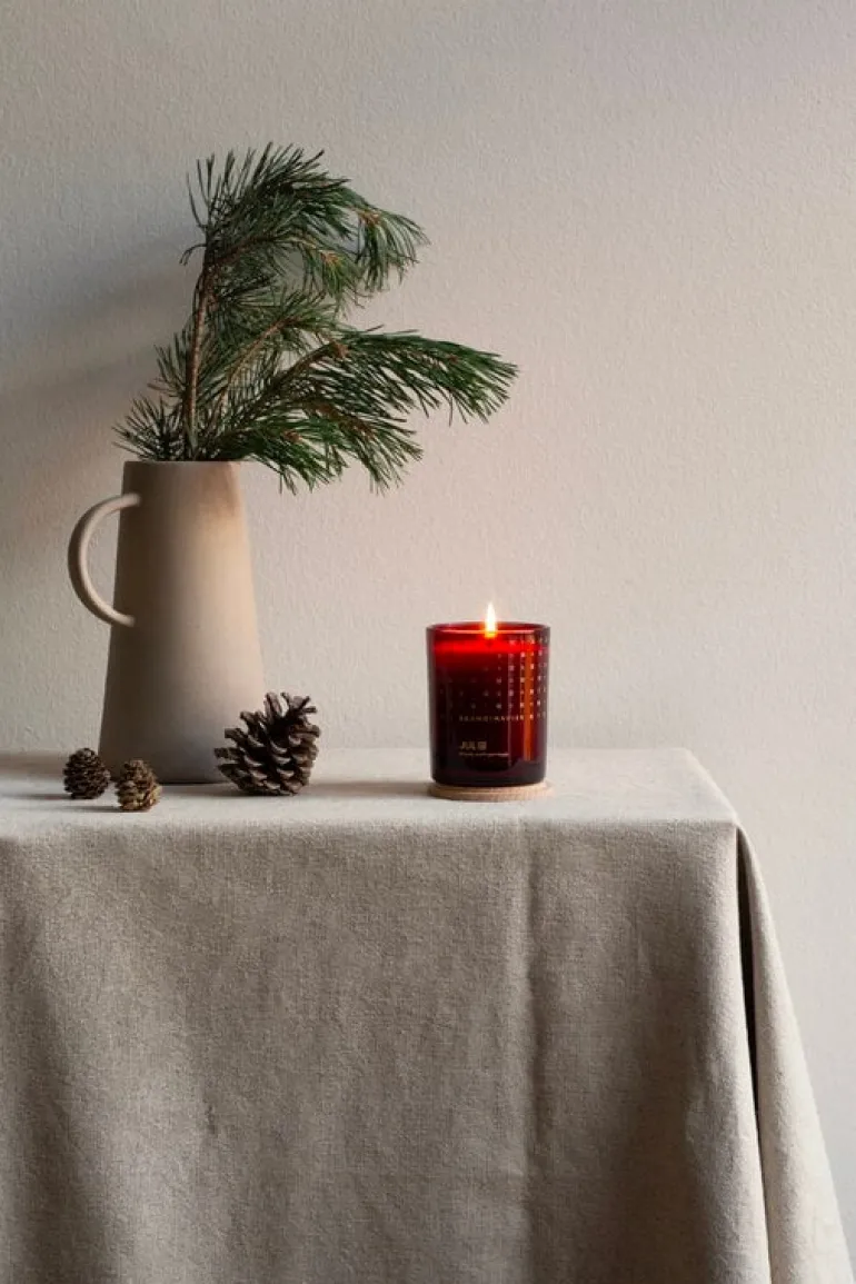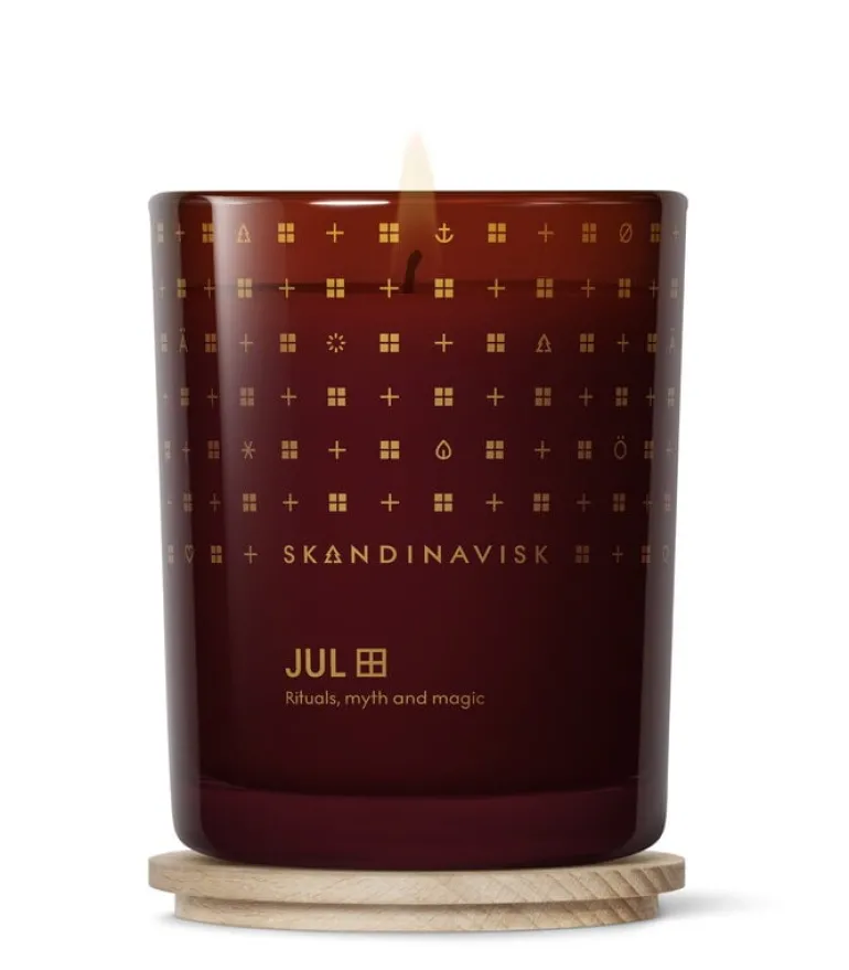 Skandinavisks doftljus Jul är fyllt med dofter från en skandinavisk jul: nybakade pepparkakor, vinterkryddnejlika, apelsin med kryddnejlika och varmt glögg. Ljuset passar särskilt bra under årets mörkaste tid, men det kommer att glädja alla julfantaster oavsett tid på året! Detta doftljus i begränsad upplaga är inneslutet i en genomskinlig glasburk. Ljuset kommer i en presentförpackning och dess trälock fungerar även som underlag.
