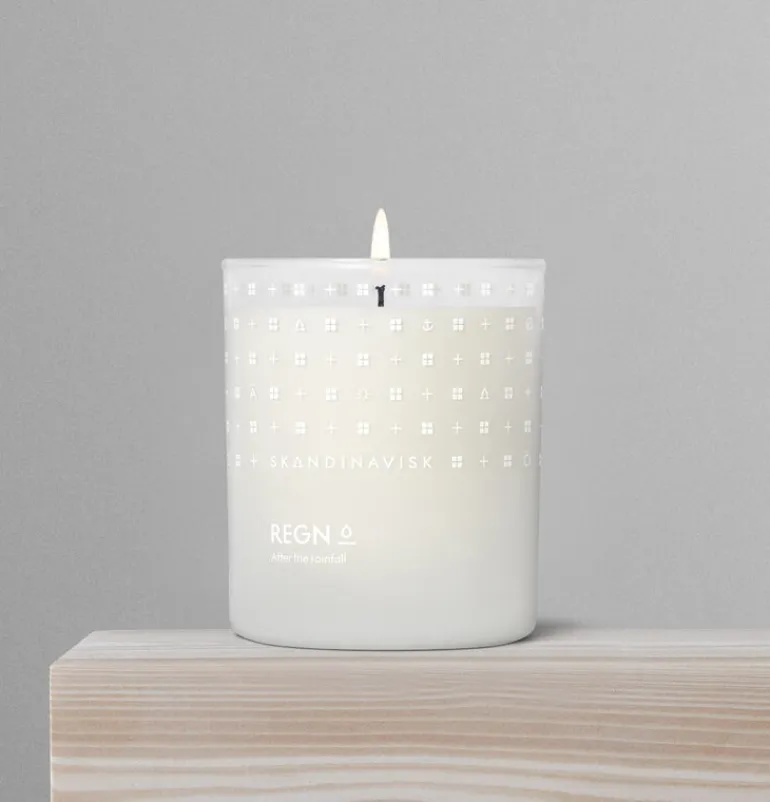 Skandinavisks doftljus Regn påminner dig om de stunder efter regnet när naturen verkar andas. Regn, ett nordiskt ord för regn, har noter av vått gräs och daggdroppade pionblommor samt fuktig jord och kullersten, vilket för tankarna till friska sommarskurar och lugnet i en höstdimma.