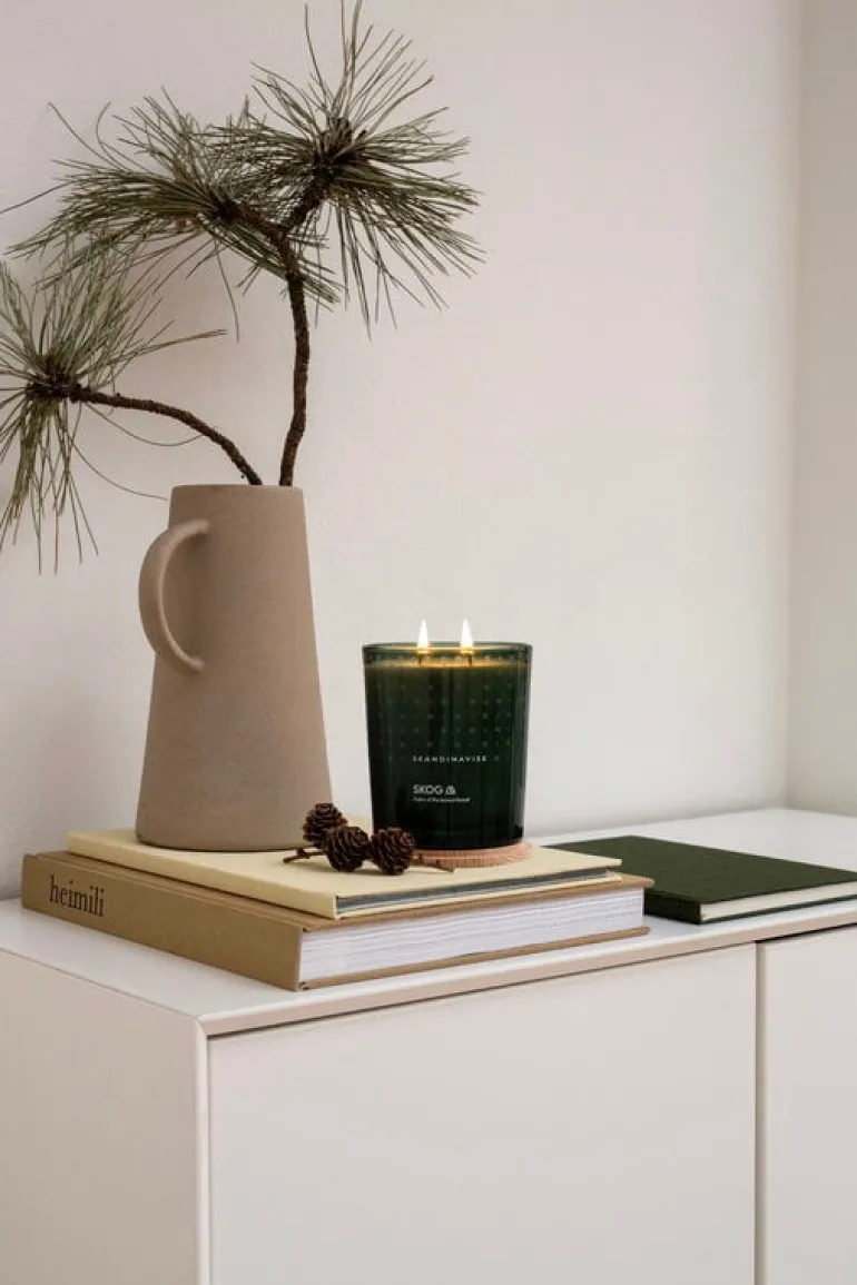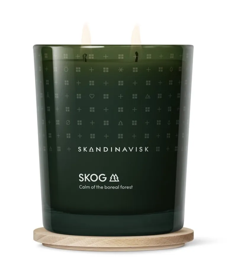 Doftljuset Skog från Skandinavisk har noter av tall, gran, björksav och skogsbingo. Namnet kommer från de svenska och norska orden för ”skog” och skildrar de magiska dofterna som finns i den skandinaviska vildmarken. Detta doftljus i begränsad upplaga kommer i en genomskinlig glasburk. Ljuset levereras i en presentförpackning och dess trälock fungerar även som underlägg. Tvåvekesljuset har en brinntid på cirka 50 timmar.