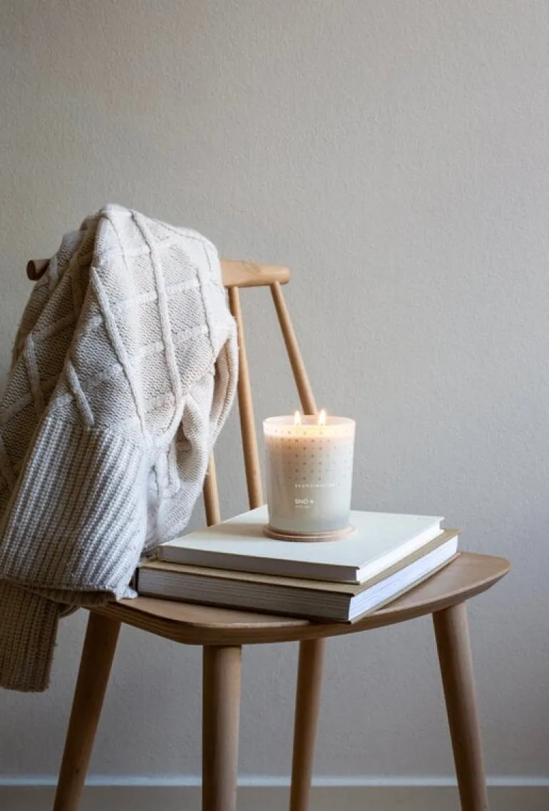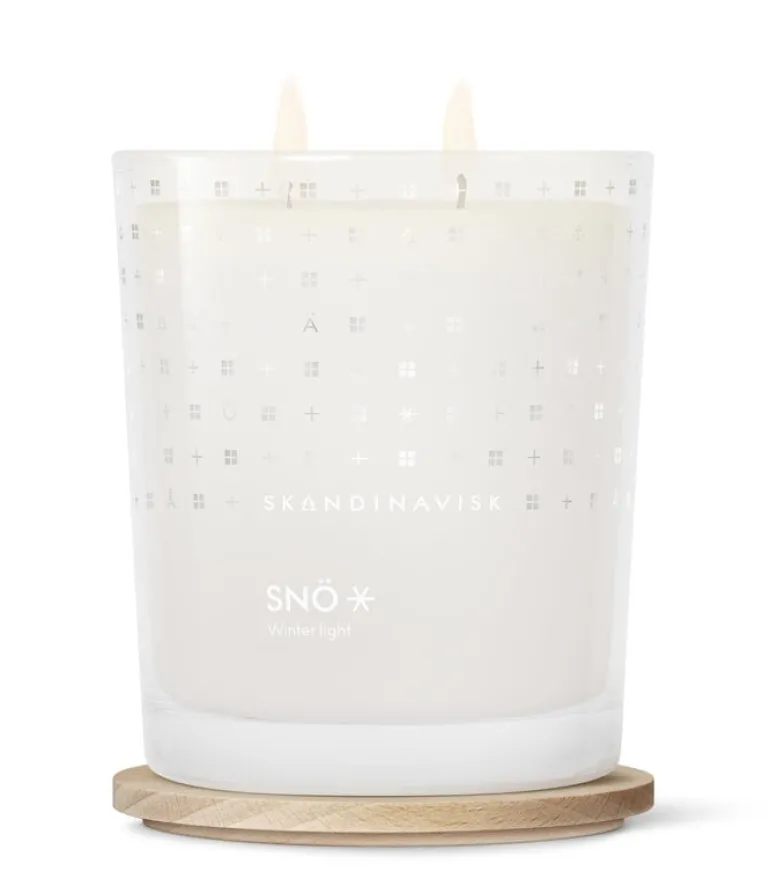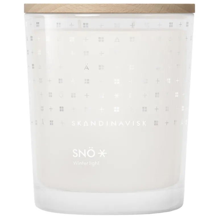 Skandinavisks doftljus Snö har en frisk vinterdoft med toner av vinterbär och fruset trä. Detta doftljus i begränsad upplaga kommer i en genomskinlig glasburk. Ljuset levereras i en presentförpackning och dess trälock fungerar även som underlägg. Tvåvekesljuset har en brinntid på cirka 50 timmar.