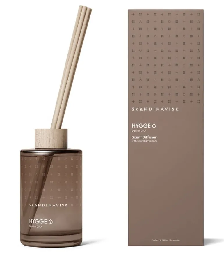 Skandinavisks doftspridare Hygge har noter av svart te, mynta, torkade äpplen och kanel. Hygge syftar på det danska konceptet att skapa en mysig känsla och gemenskap i vardagliga stunder.