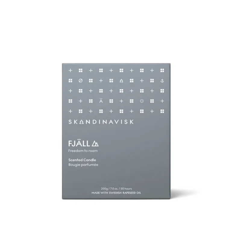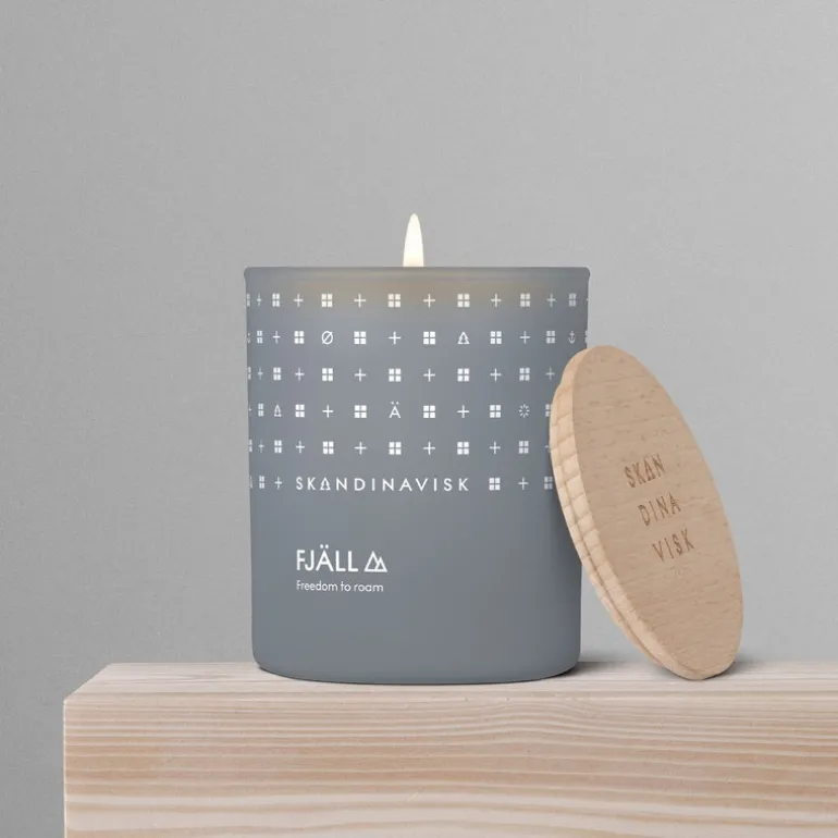 Doftljuset Fjäll, från Skandinavisk, inspirerades av den nordiska allemansrätten: ljuset tar dig på en resa över de svenska och norska fjällens tuffa och väderbitna terräng. Doften har toner av ljung och timjan, malda bär och bladsaft.