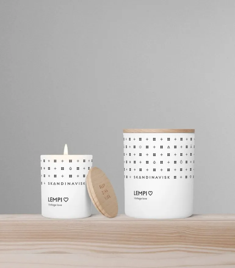 Skandinavisks doftljus Lempi har en romantisk doft med noter av pion, ros, jordgubbar och mossa. Skandinavisks doftljus Lempi inspirerades av skönheten i de nordiska somrarna, såväl som nostalgiska kärlekshistorier från förr. Lempi är passande nog ett gammalt finskt ord för ”kärlek”.