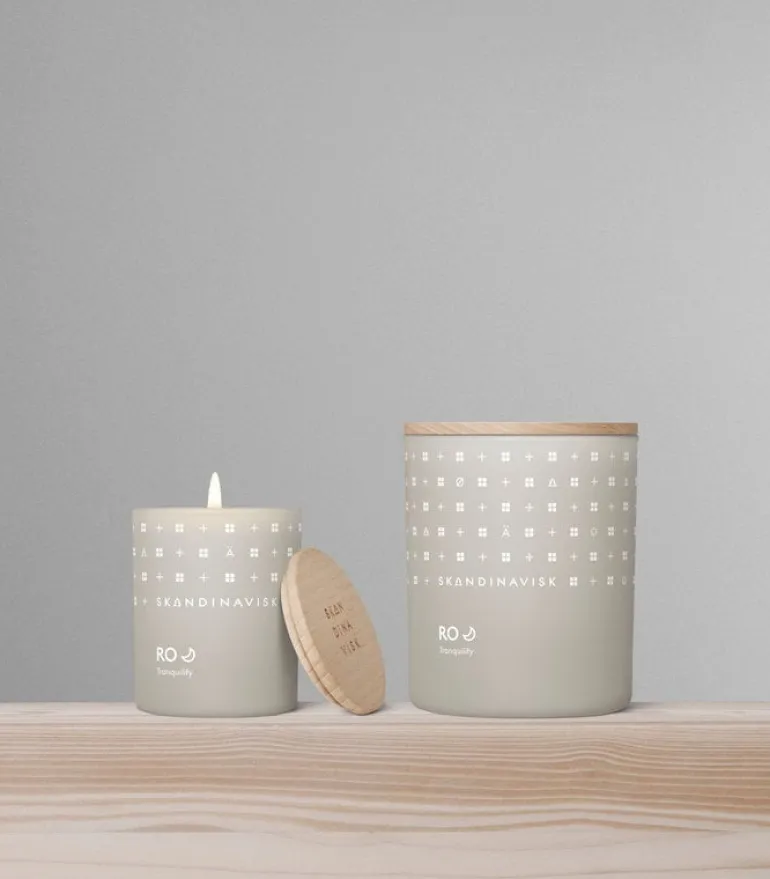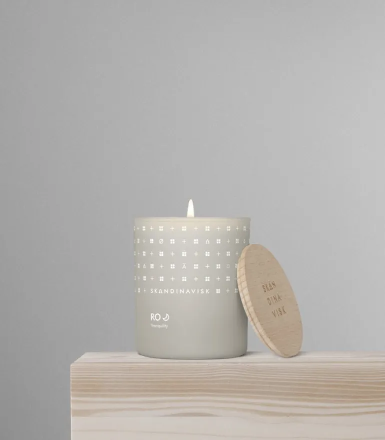 Skandinavisks doftljus Ro har en ljuvlig doft av nyklippt gräs, nedfallna löv, gurka och vilda violer. I alla de skandinaviska språken är ordet ”ro” detsamma – ett perfekt namn för ljusets lugnande doft.