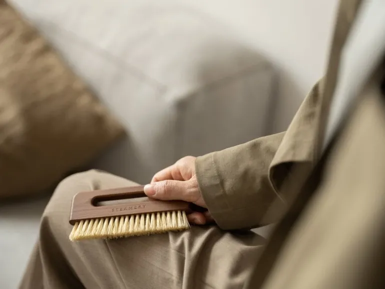 Steamerys lilla klädborste rengör dina jeans- och bomullsplagg eller hemmatextilier varsamt men effektivt och tar bort hår, damm och smuts med bara några svep. Borsten i resestorlek passar de flesta material förutom de känsligaste såsom siden och chiffong. Borsten är gjord av veganska naturliga material: ek och sisalfibrer.